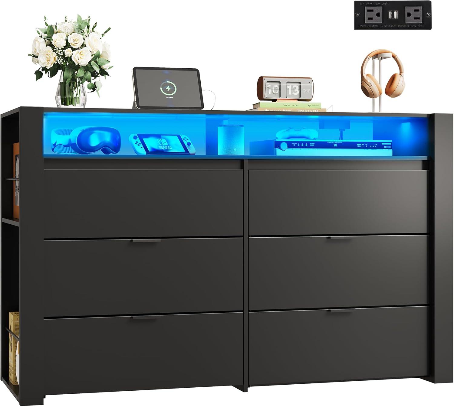 WLIVE White Dresser with 6 Drawer, 59“Wide Modern Chest of Drawers for Bedroom, Wood Large Storage Tower Unit, Closet Store Organizer for Living Room, Hallway