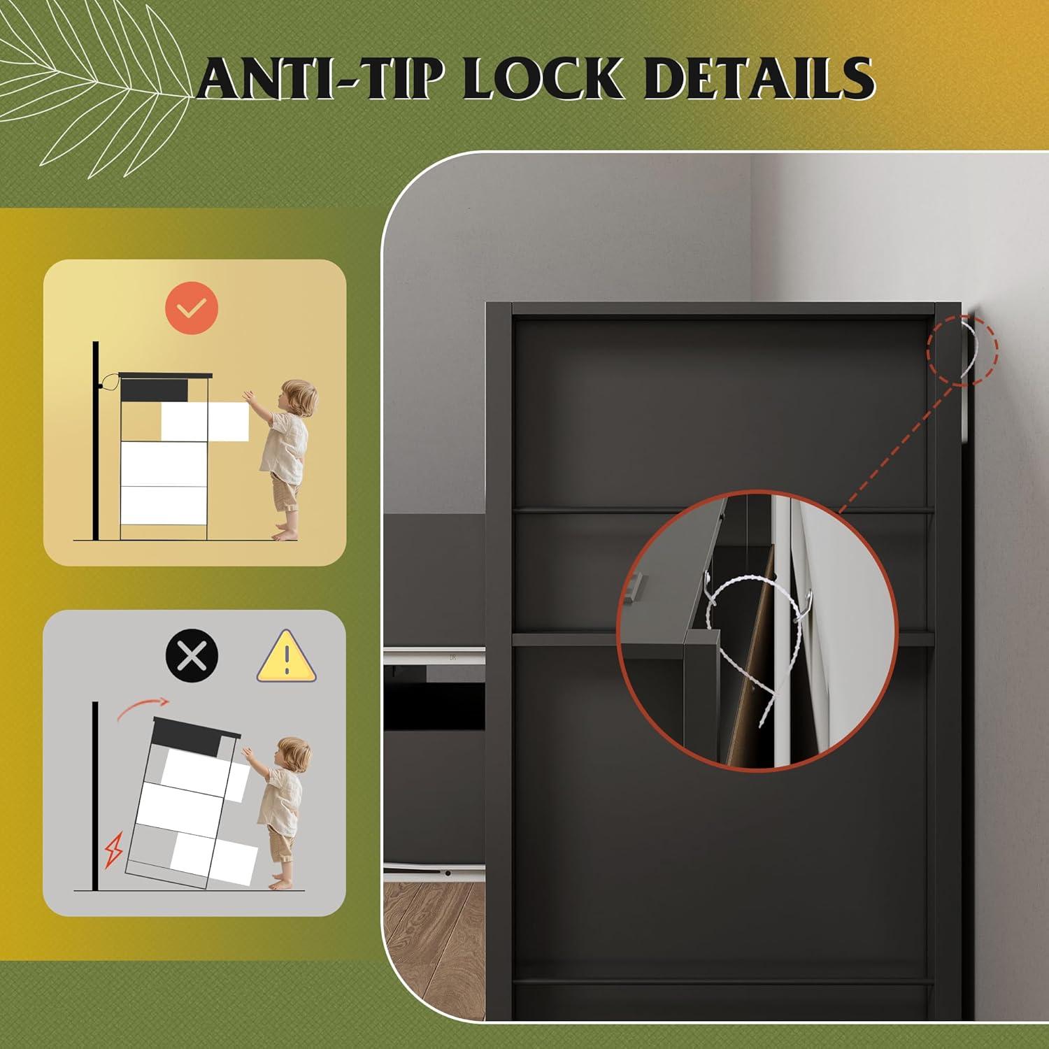 🔔【Multiple Scenarios】The storage dresser (size :15.75''D x 25.59''W x 47.32''H) is suitable for a variety of settings, making it ideal for bedrooms, kitchens, hallways, offices and more. It can be used as a dresser, long nightstand, key cabinet and so on.