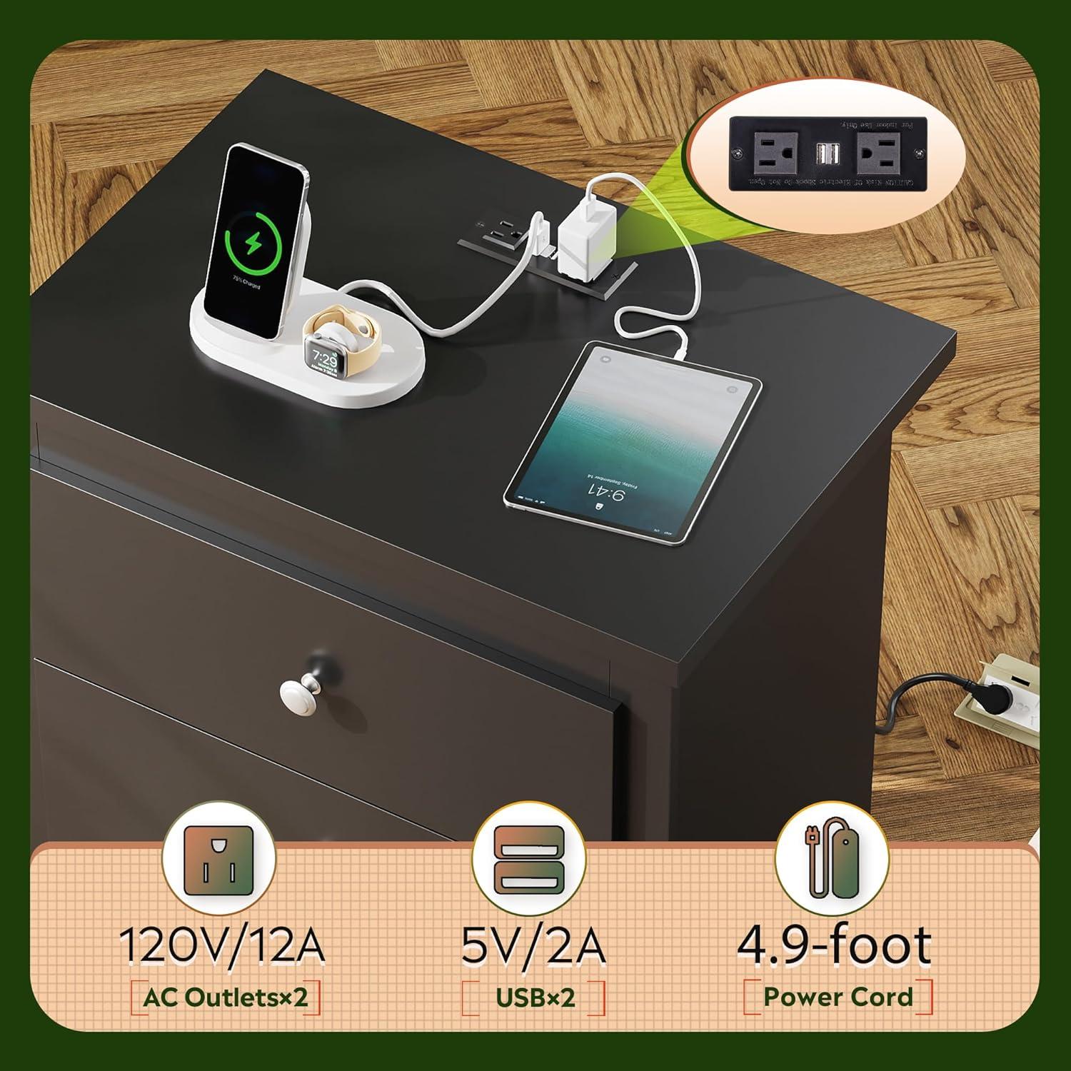 [Convenient Charging Station] The wood side table comes with charging design, making it easy to charge your phone and other devices. With 2 USB ports and 2 AC outlets, you can charge multiple devices at once, so you won't have to worry about finding an outlet while working or relaxing.