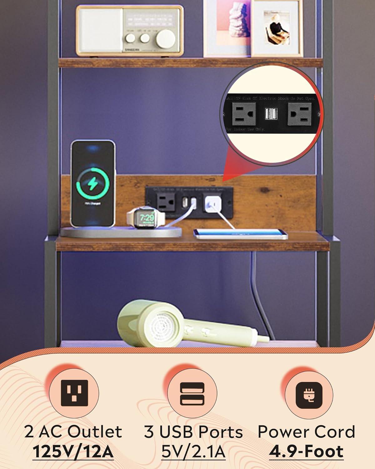 【Built-in Power】This nightstand with charging station includes extra USB ports for LED lights and devices like phones or tablets. Its spill-proof outlet design ensures safety, ideal for families with kids.