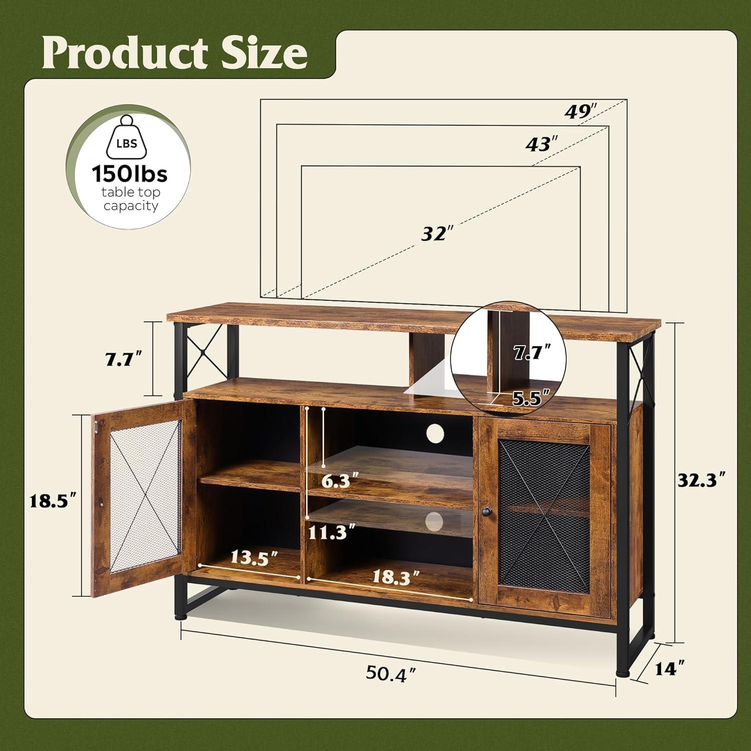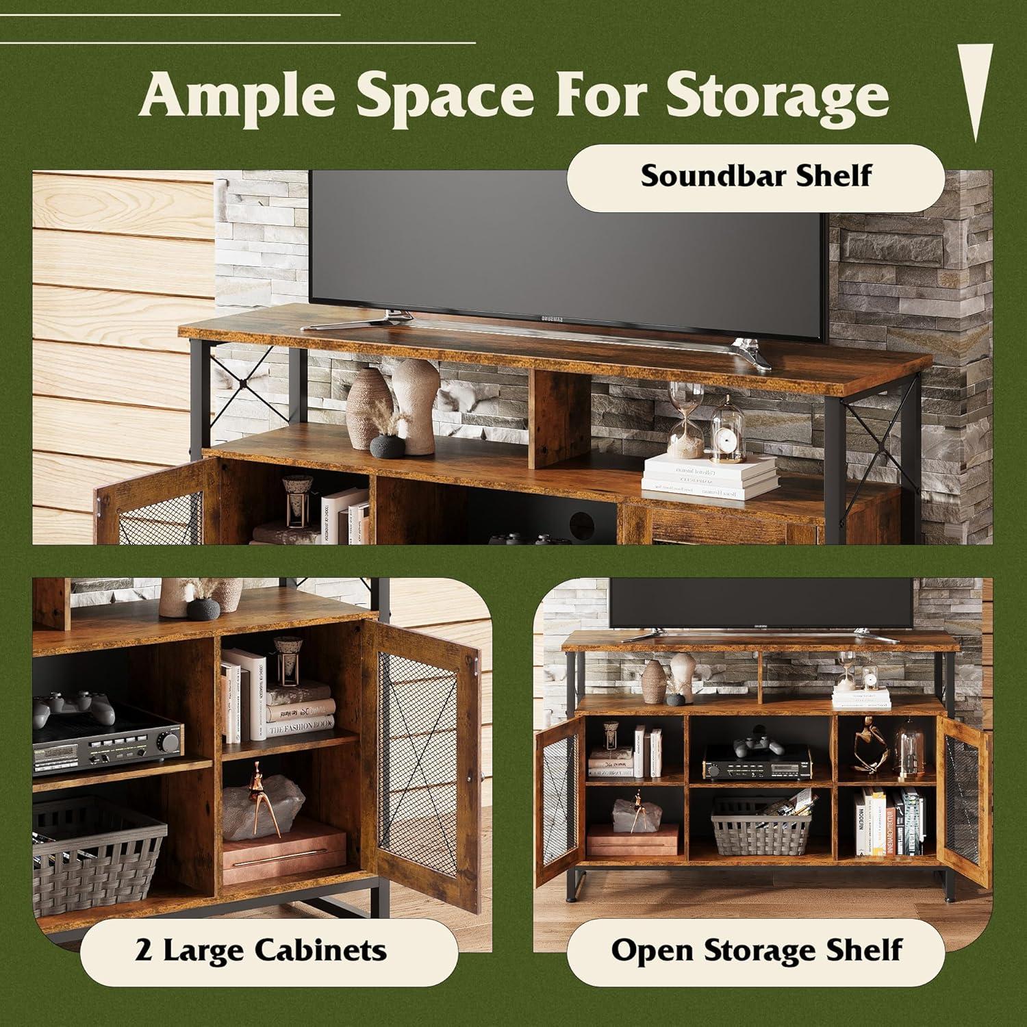 WLIVE TV Stand 55 inch TV, Tall Entertainment Center with Storage, Farmhouse Industrial TV Console for Bedroom Living Room, Rustic Brown(Rustic Brown)