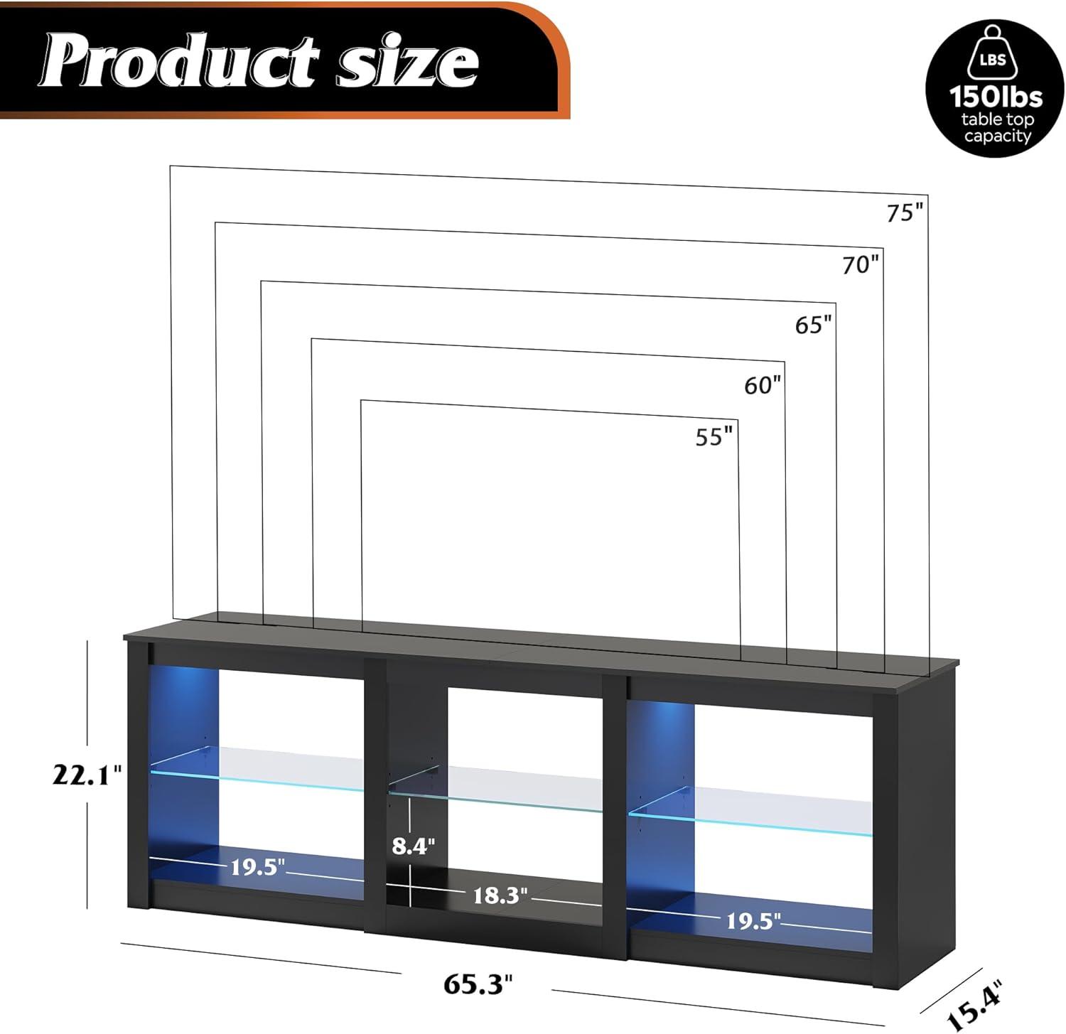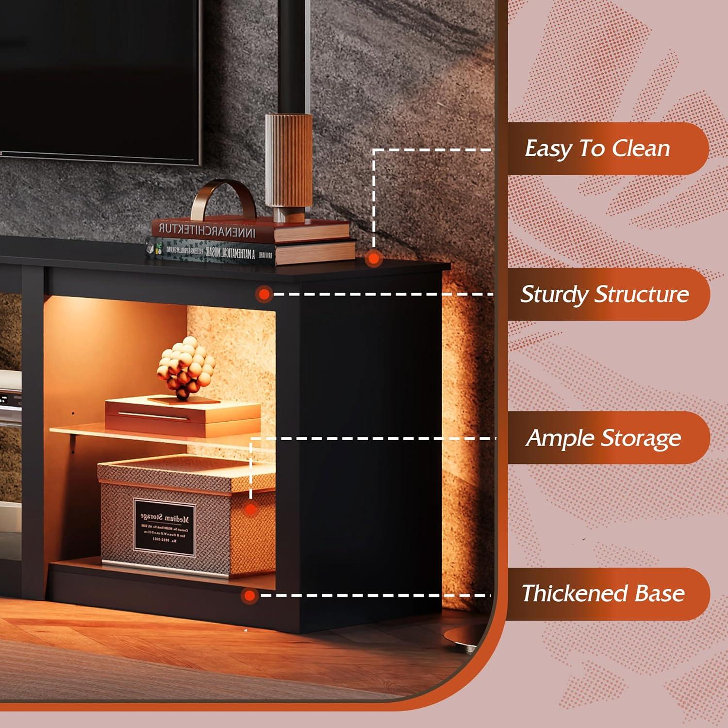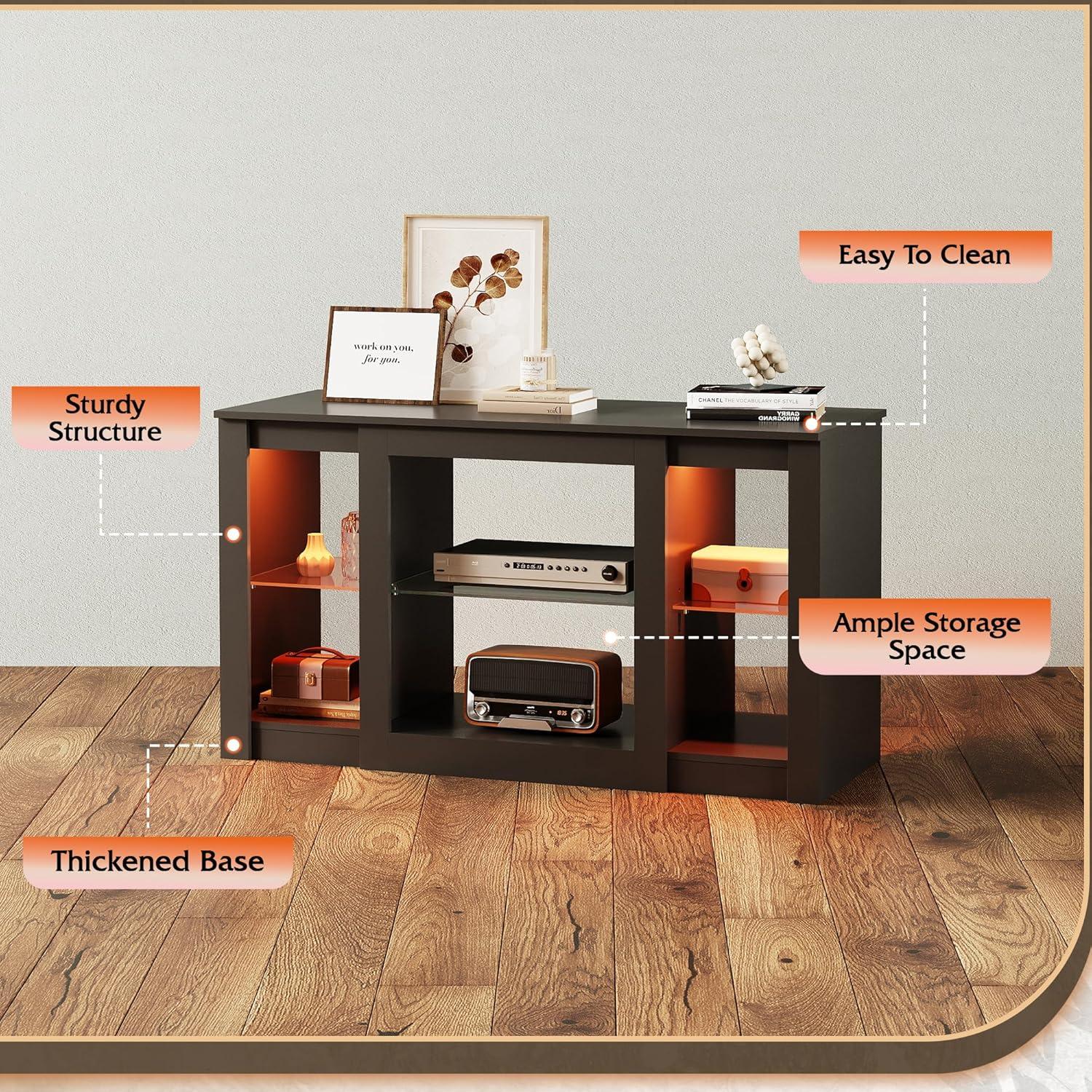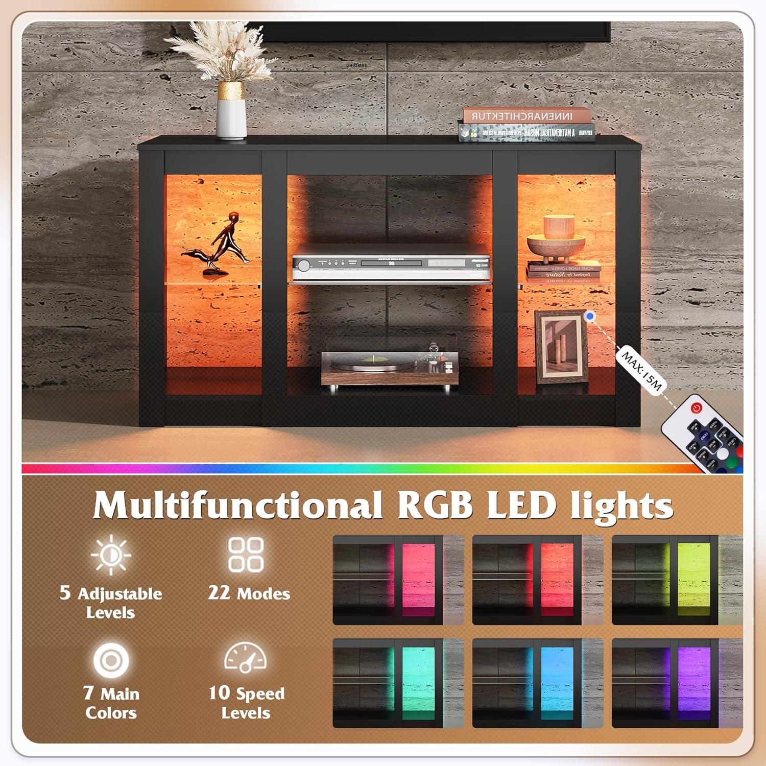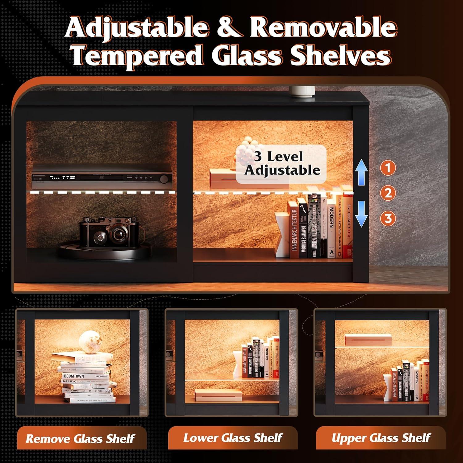 WLIVE TV Stand for 43 Inch TV, Modern Entertainment Center with LED Lights & Adjustable Glass Shelves, Sturdy Media Console for Living Room, Bedroom,Gaming (Black)(Black)