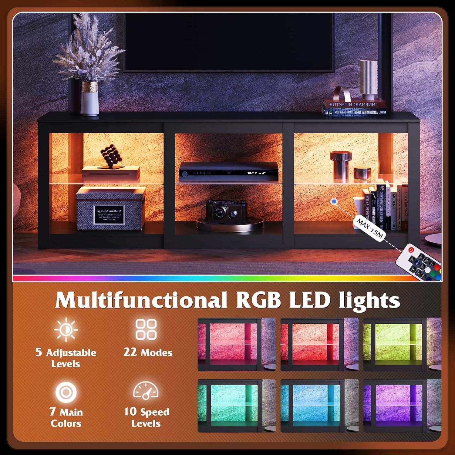 imageWLIVE TV Stand for 43 Inch TV Modern Entertainment Center with LED Lights ampamp Adjustable Glass Shelves Sturdy Media Console for Living Room BedroomGaming BlackBlack