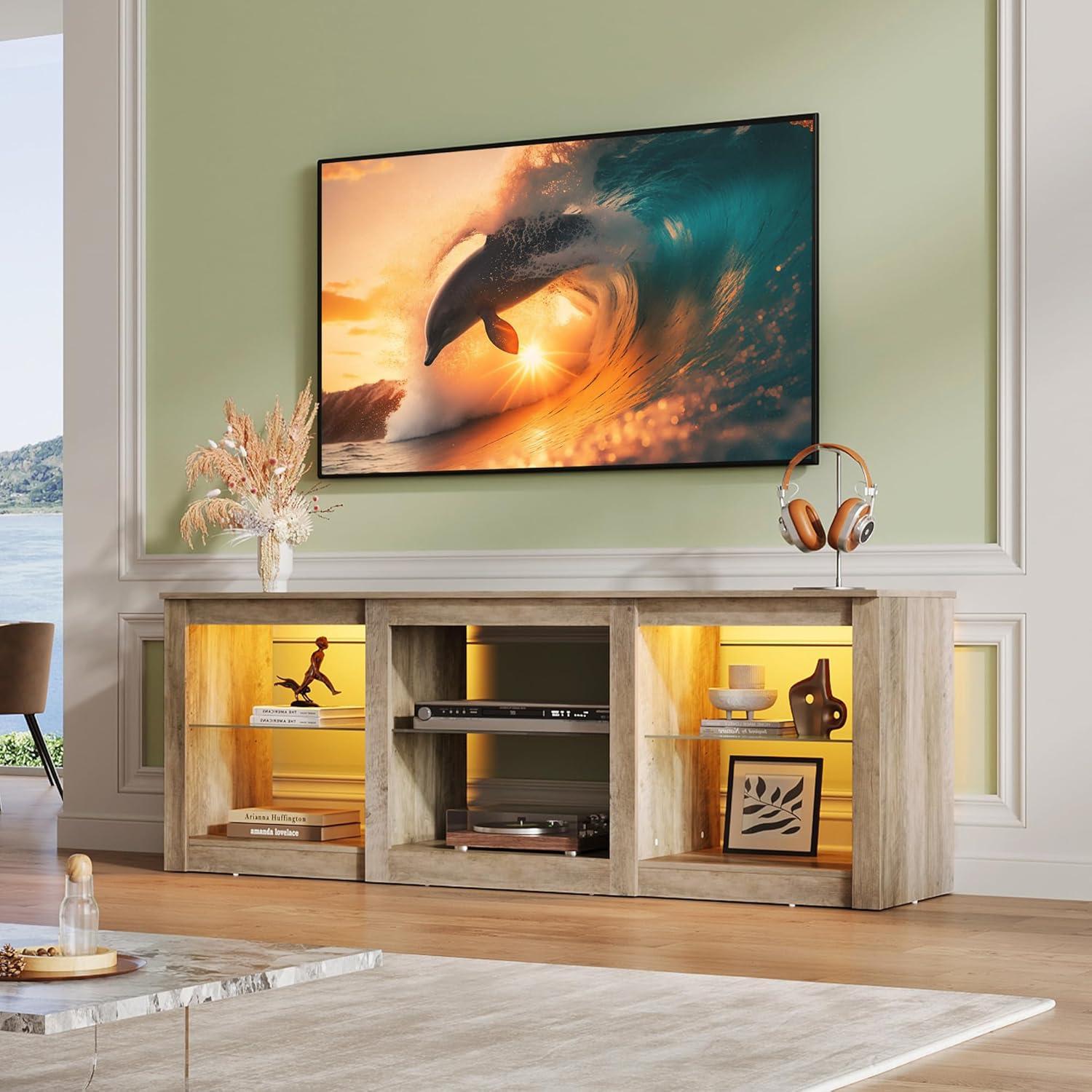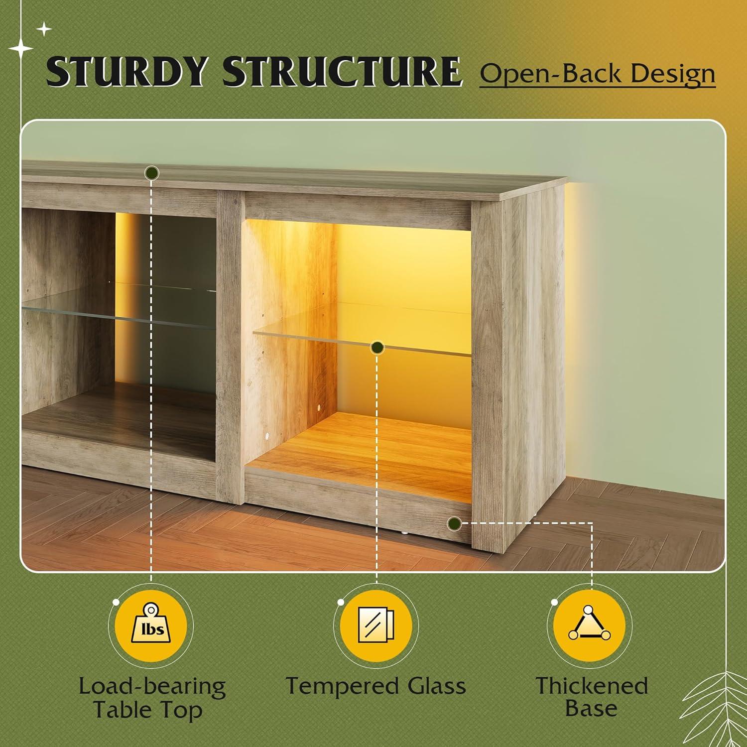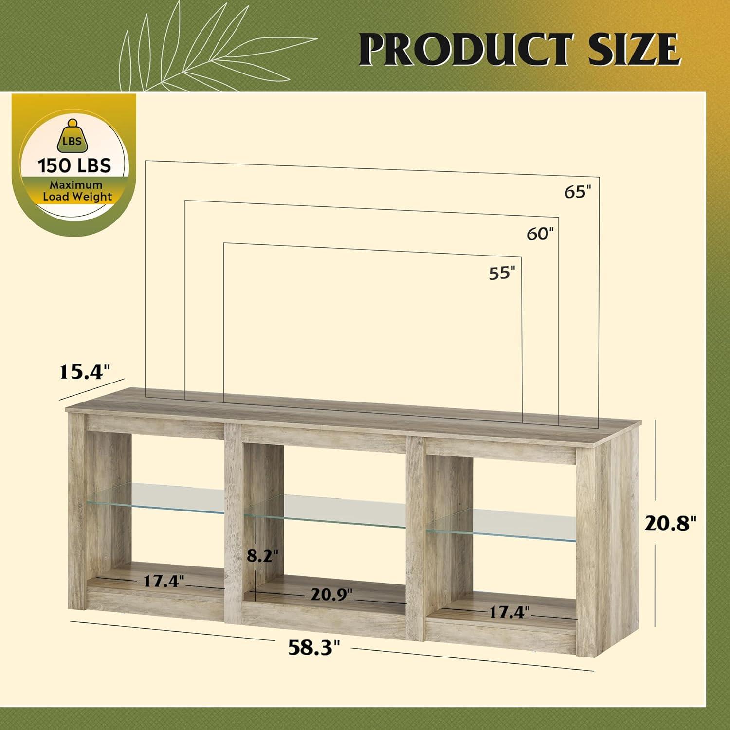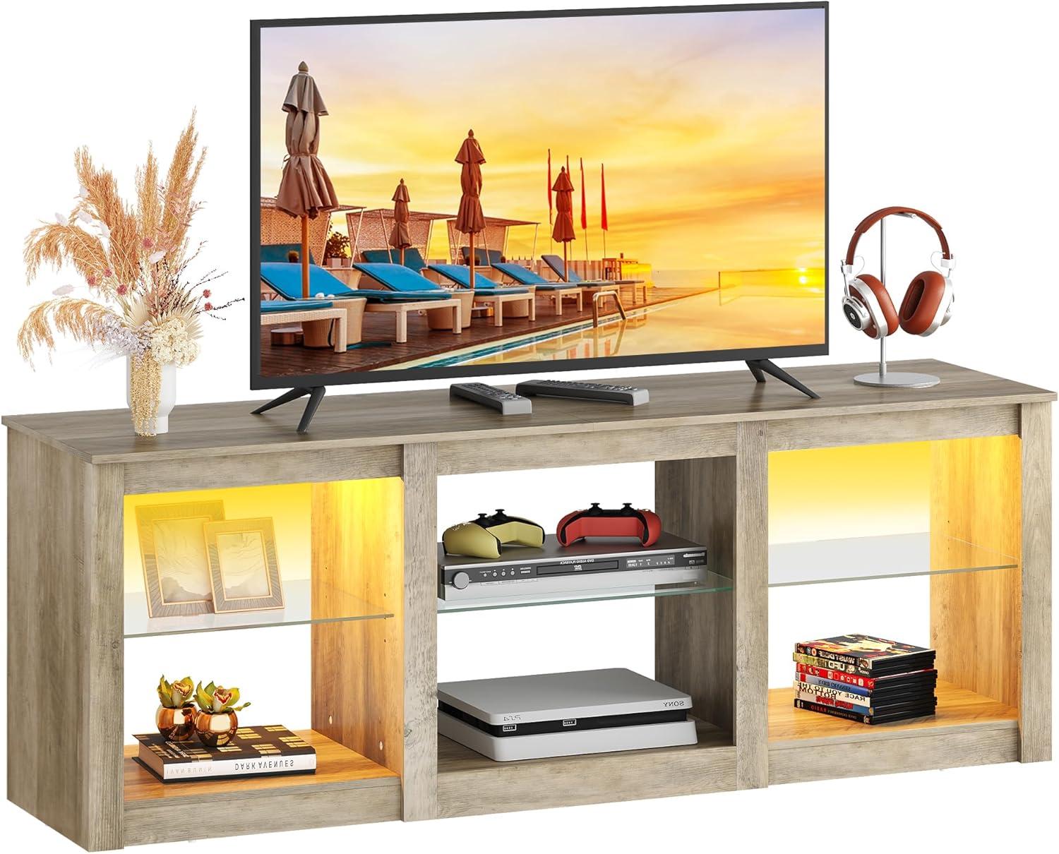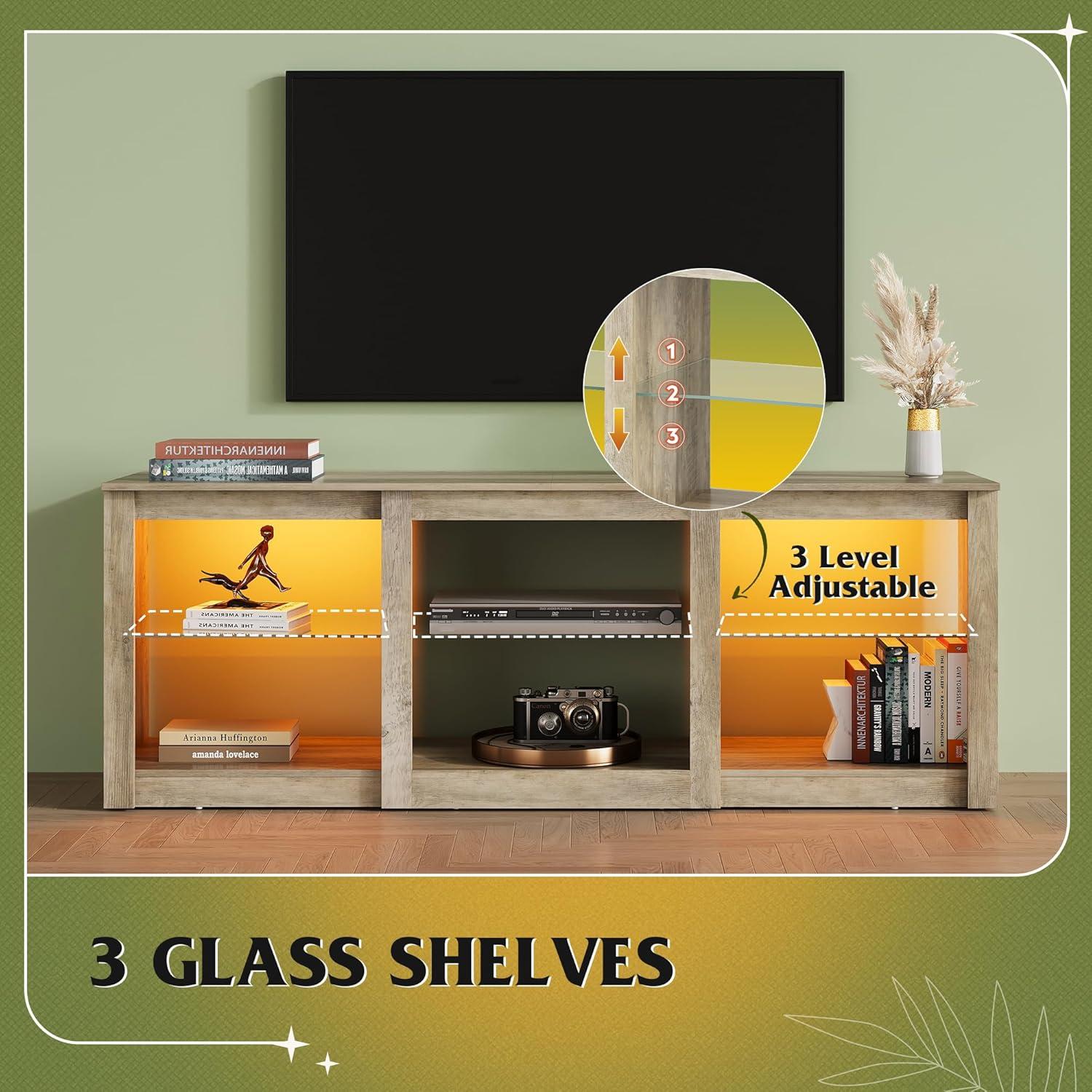 【Smart Storage Solution】With a 15.4″ profile, this television stand tucks neatly into tight spaces.Three adjustable tempered glass shelves allow for customizable storage, keeping media devices, gaming systems, and DVDs organized and the open design allows for easy access and cleaning