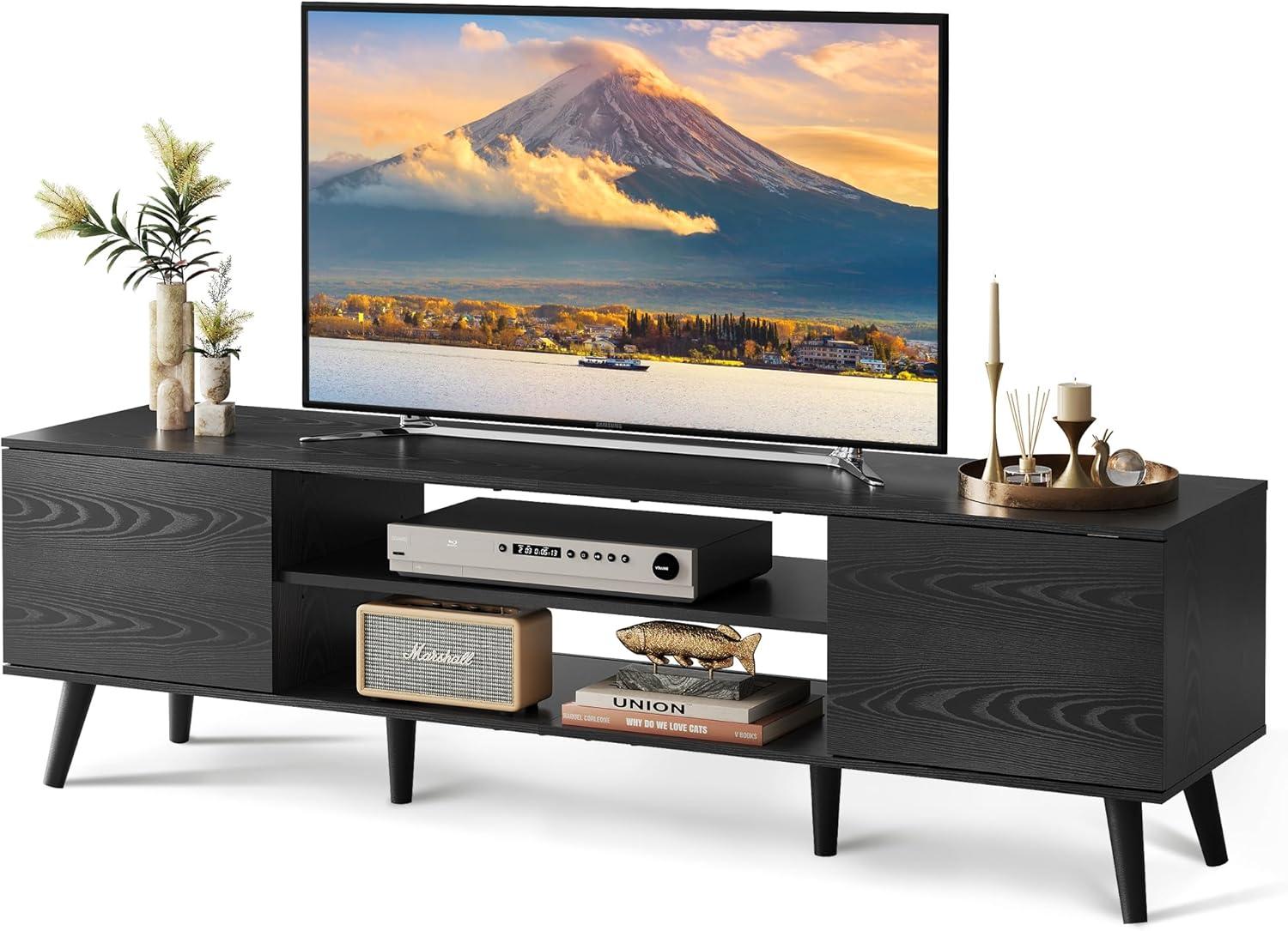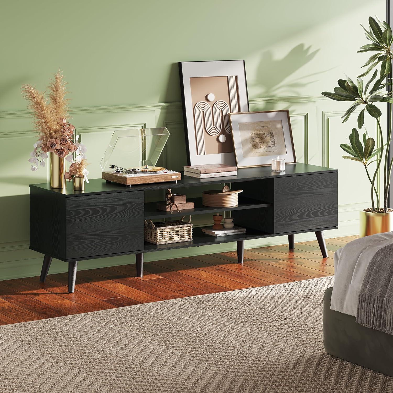 imageWLIVE TV Stand for 55 60 inch TV Modern Entertainment Center with Storage Cabinets Mid Century TV Console Table for Bedroom TV Stand for Living Room Charcoal BlackRelief Black