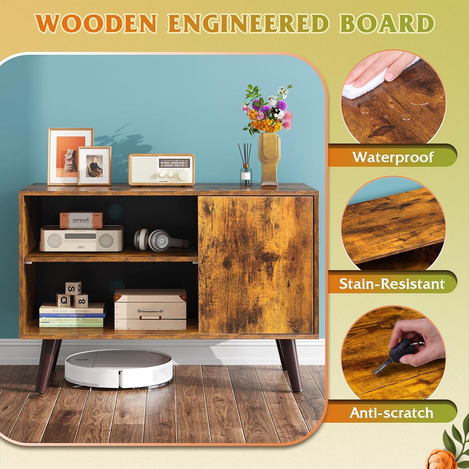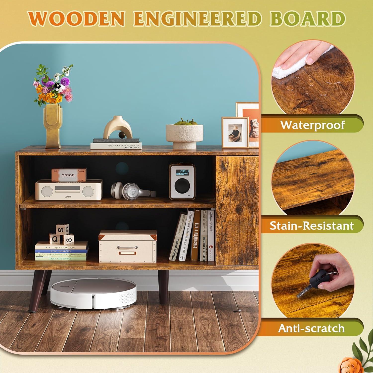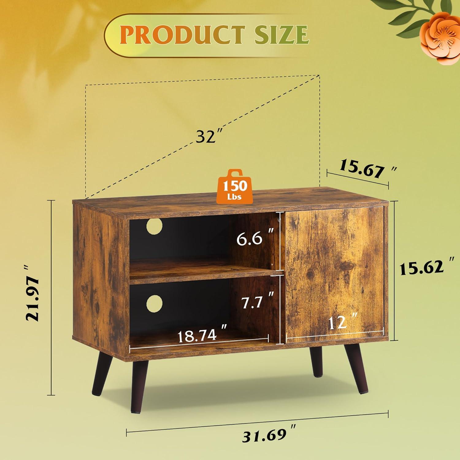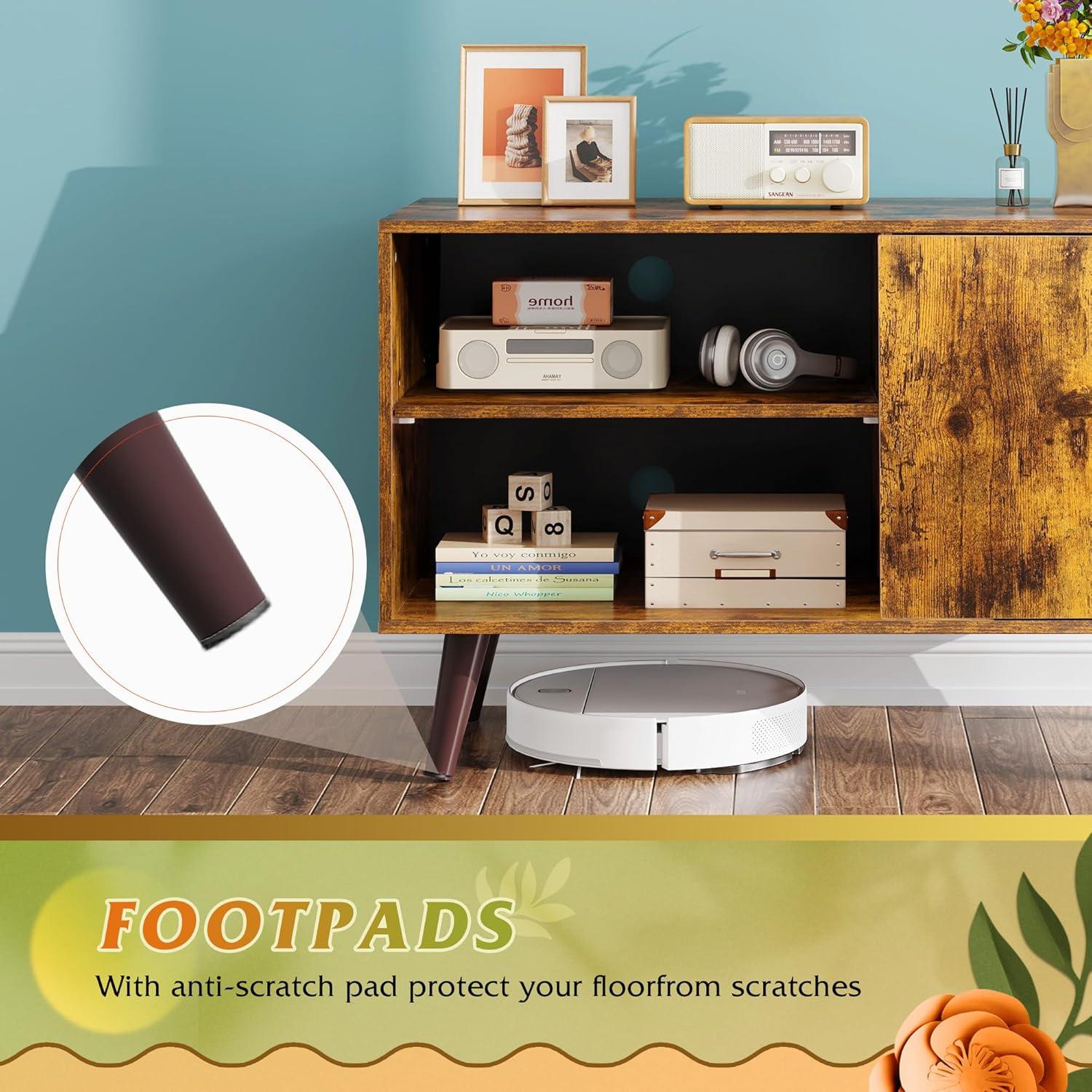 【Mid Century Modern TV Stand】This Mid Century Modern TV Stand for 55 inch TV measures 47.2″W x15.7″D x 21.8″H. Wood material and tapered angled legs improve the entertainment centre's retro style, creating a warm and inviting atmosphere to your home.
