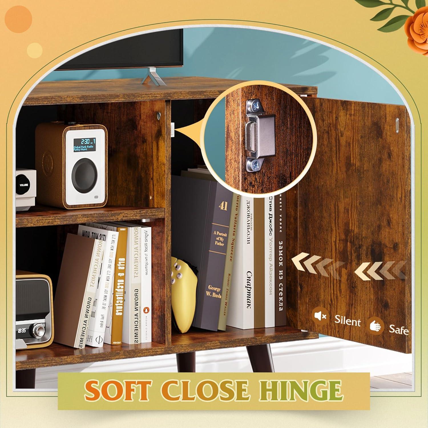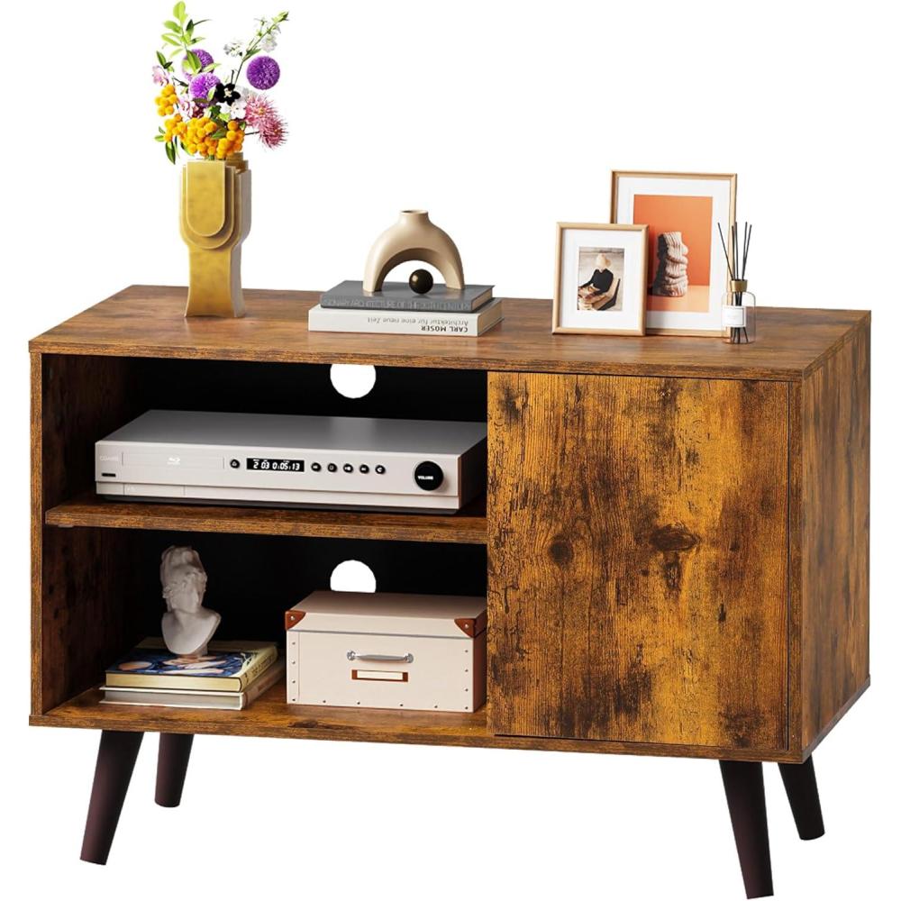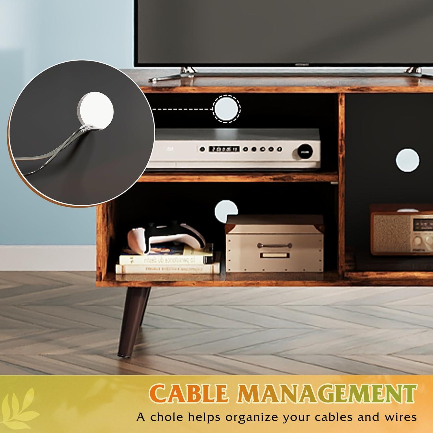 WLIVE TV Stand for 55 Inch TVs, Entertainment Center with Storage Cabinet, Mid-Century TV Stands for Living Room and Bedroom, 50″ TV Console, Brown(Rustic Brown)