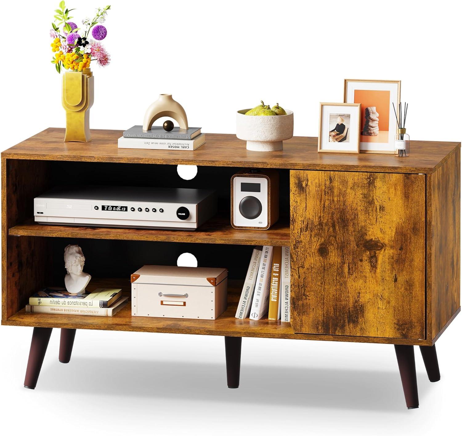 WLIVE TV Stand for 55 Inch TVs, Entertainment Center with Storage Cabinet, Mid-Century TV Stands for Living Room and Bedroom, 50" TV Console, Brown(Rustic Brown)