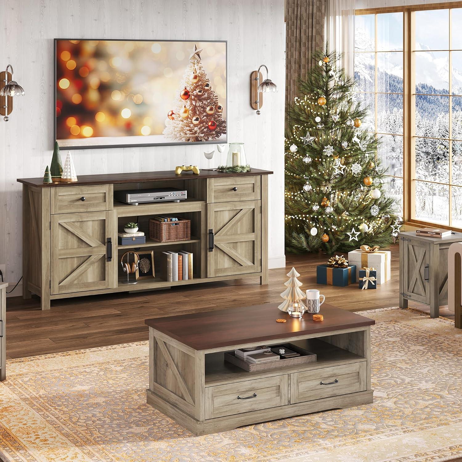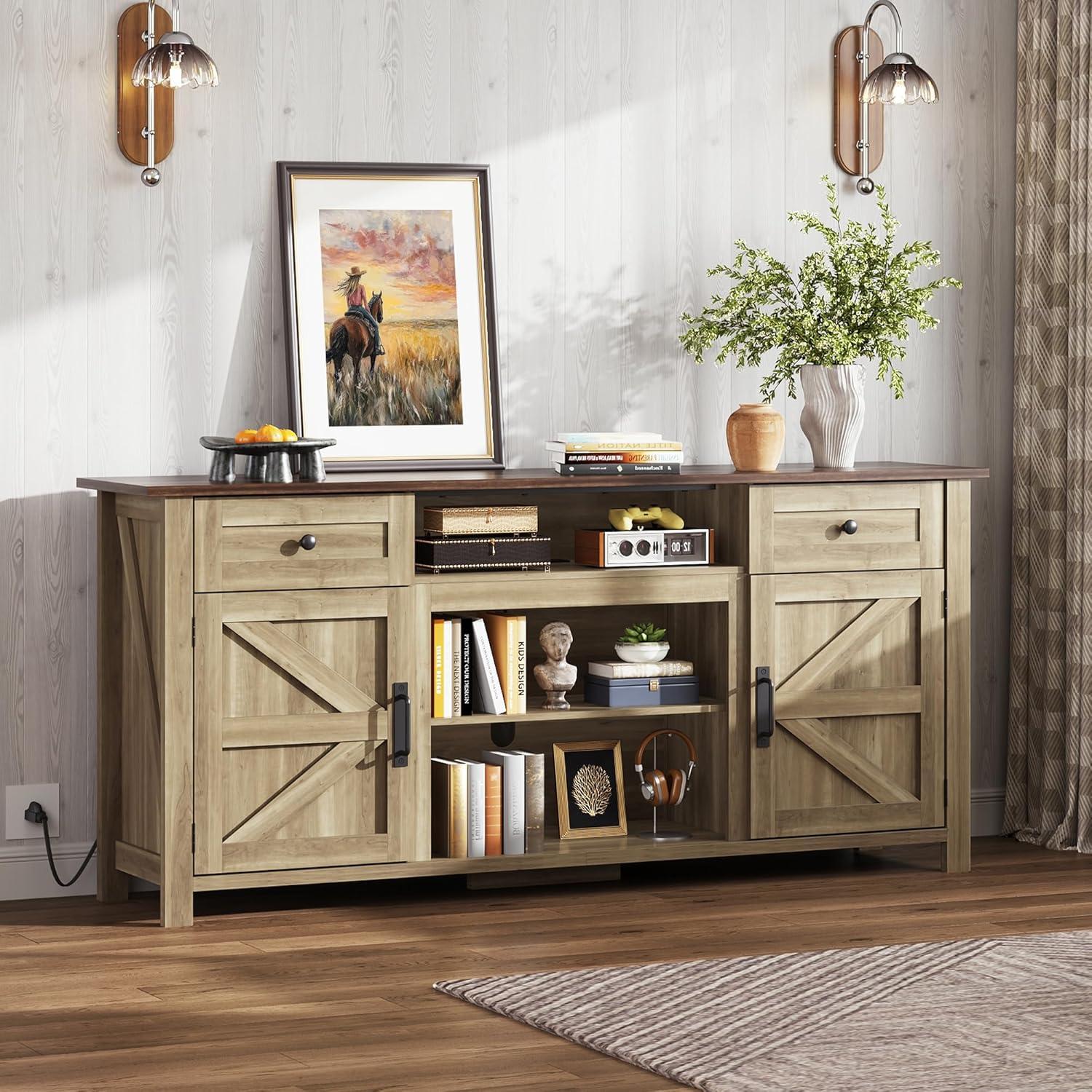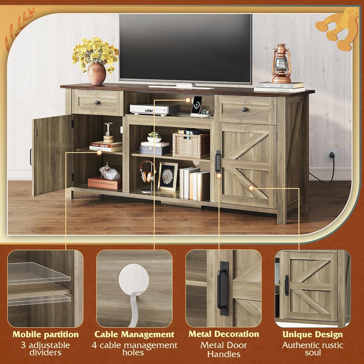Modern Farmhouse Style with Functional Details: Blending rustic charm with contemporary function, this TV stand features magnetic soft-close doors and an anti-tip design for added stability. Its thoughtful layout and refined finish elevate any living space with both character and practicality