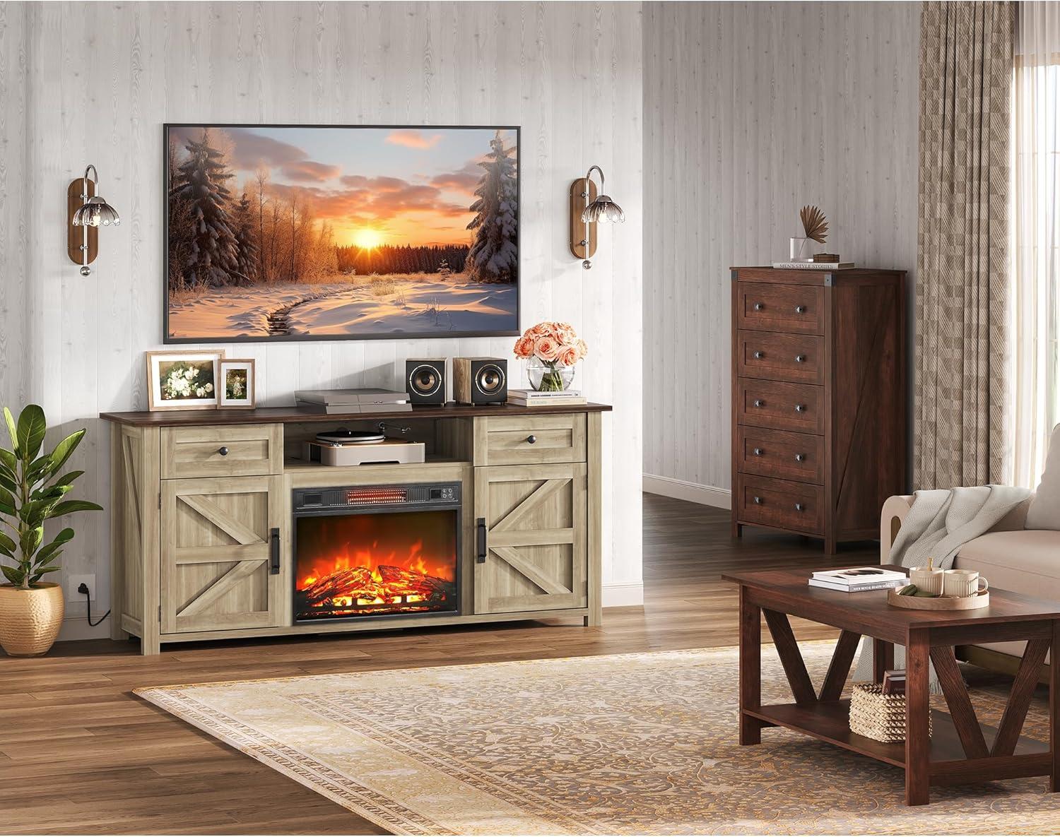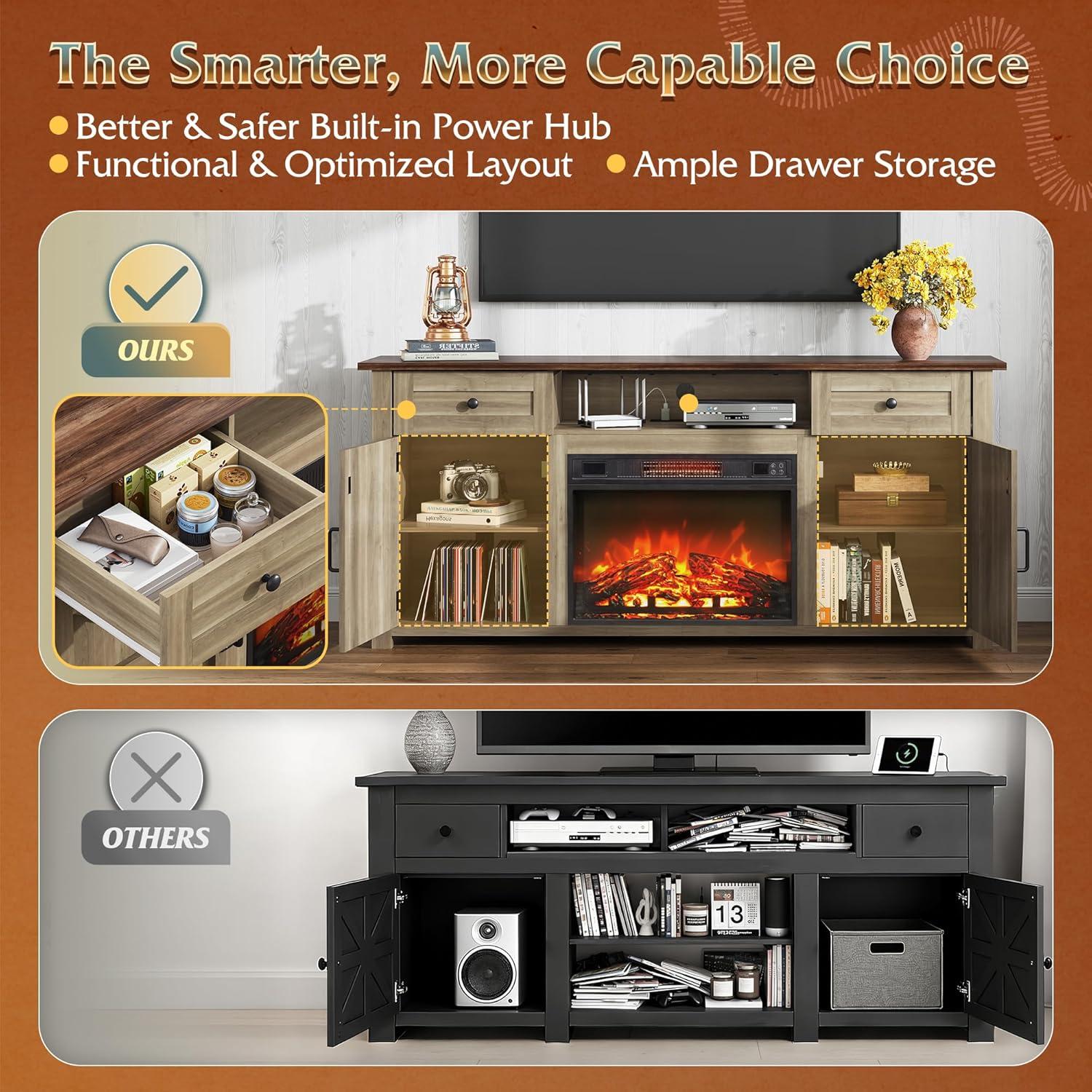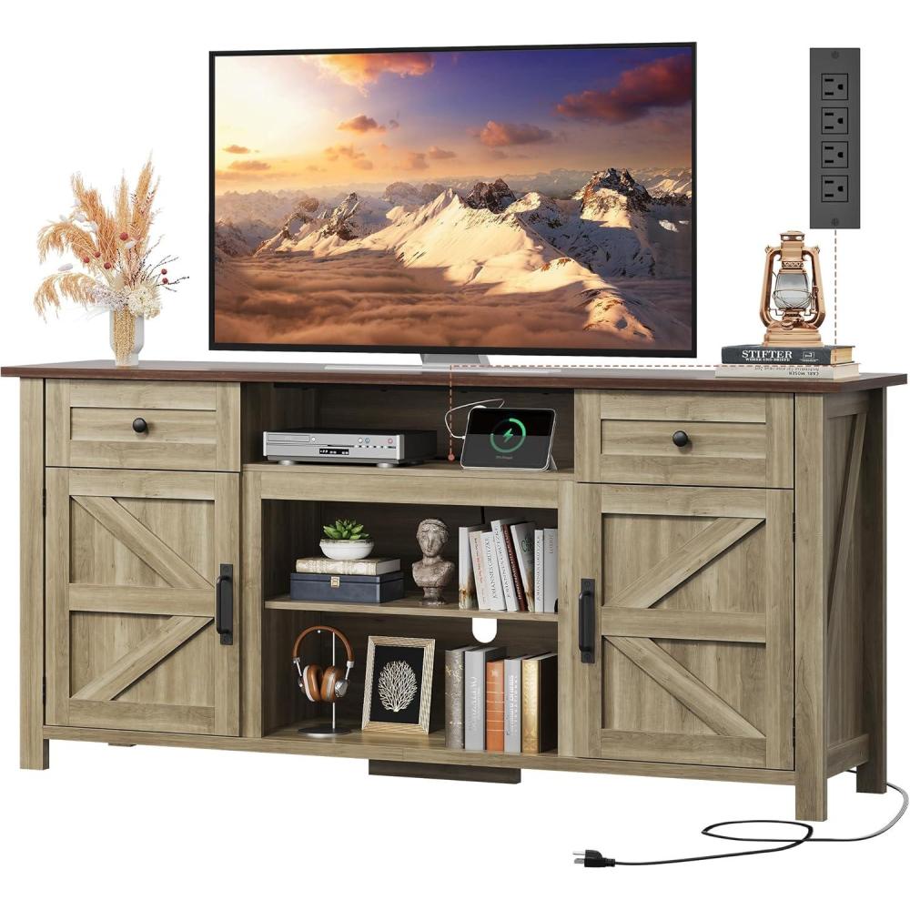 Modern Farmhouse Style with Functional Details: Blending rustic charm with contemporary function, this TV stand features magnetic soft-close doors and an anti-tip design for added stability. Its thoughtful layout and refined finish elevate any living space with both character and practicality
