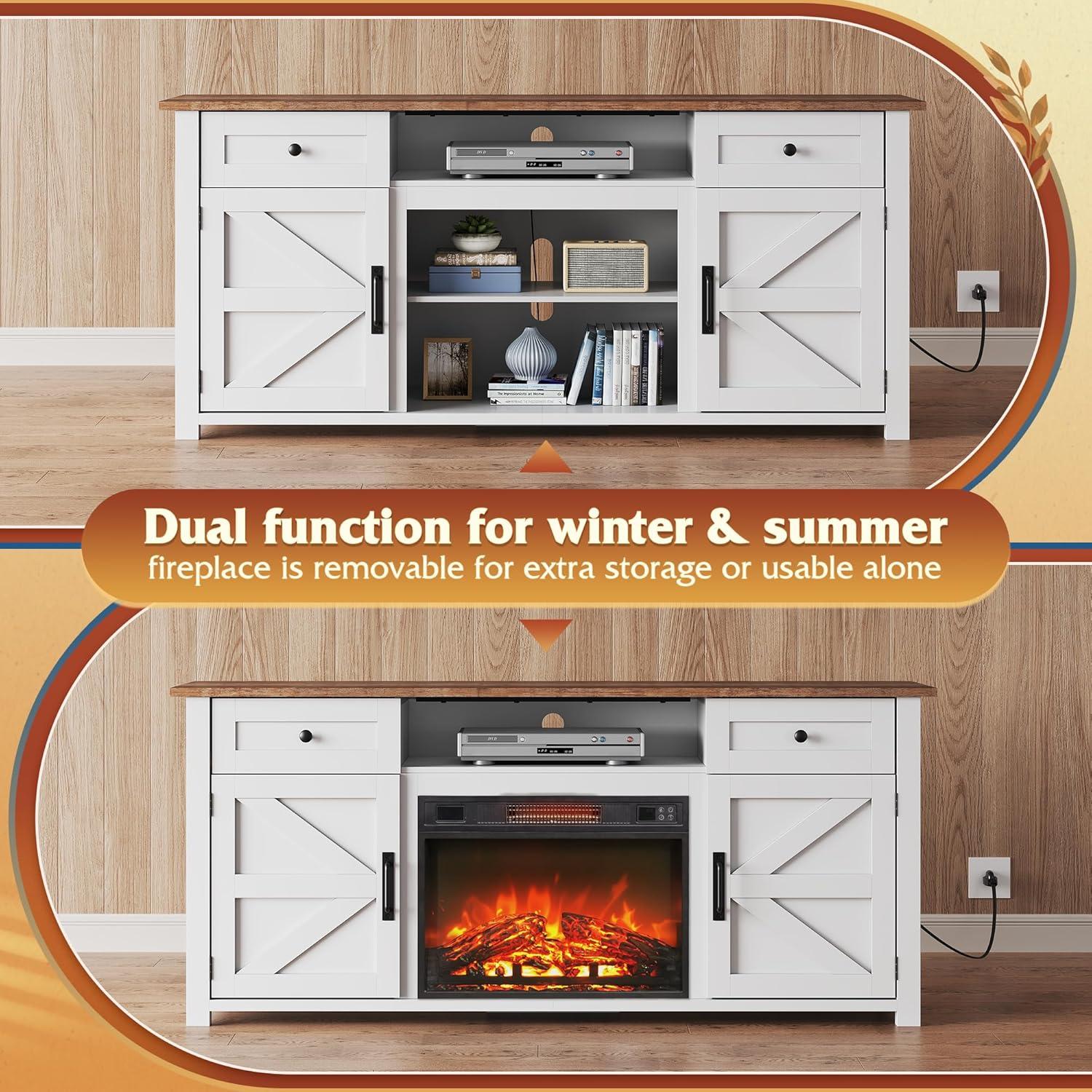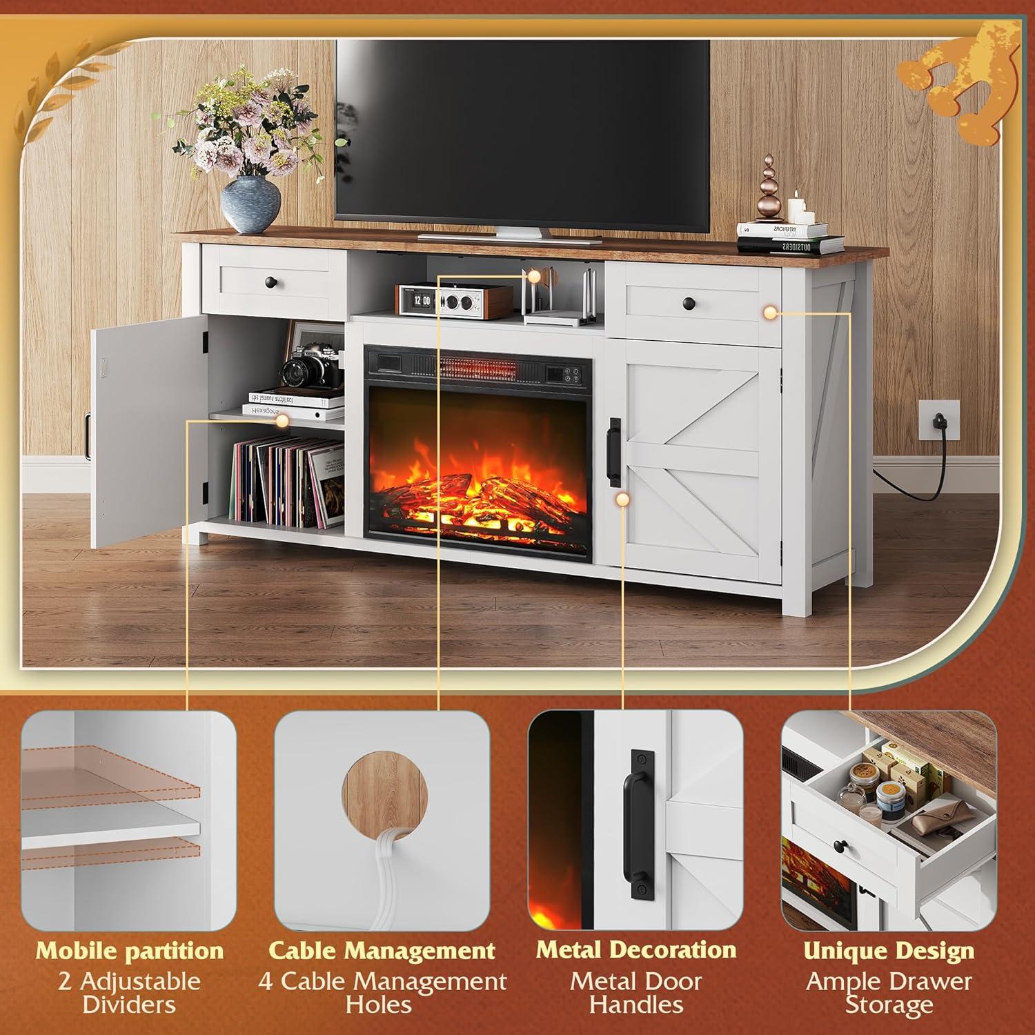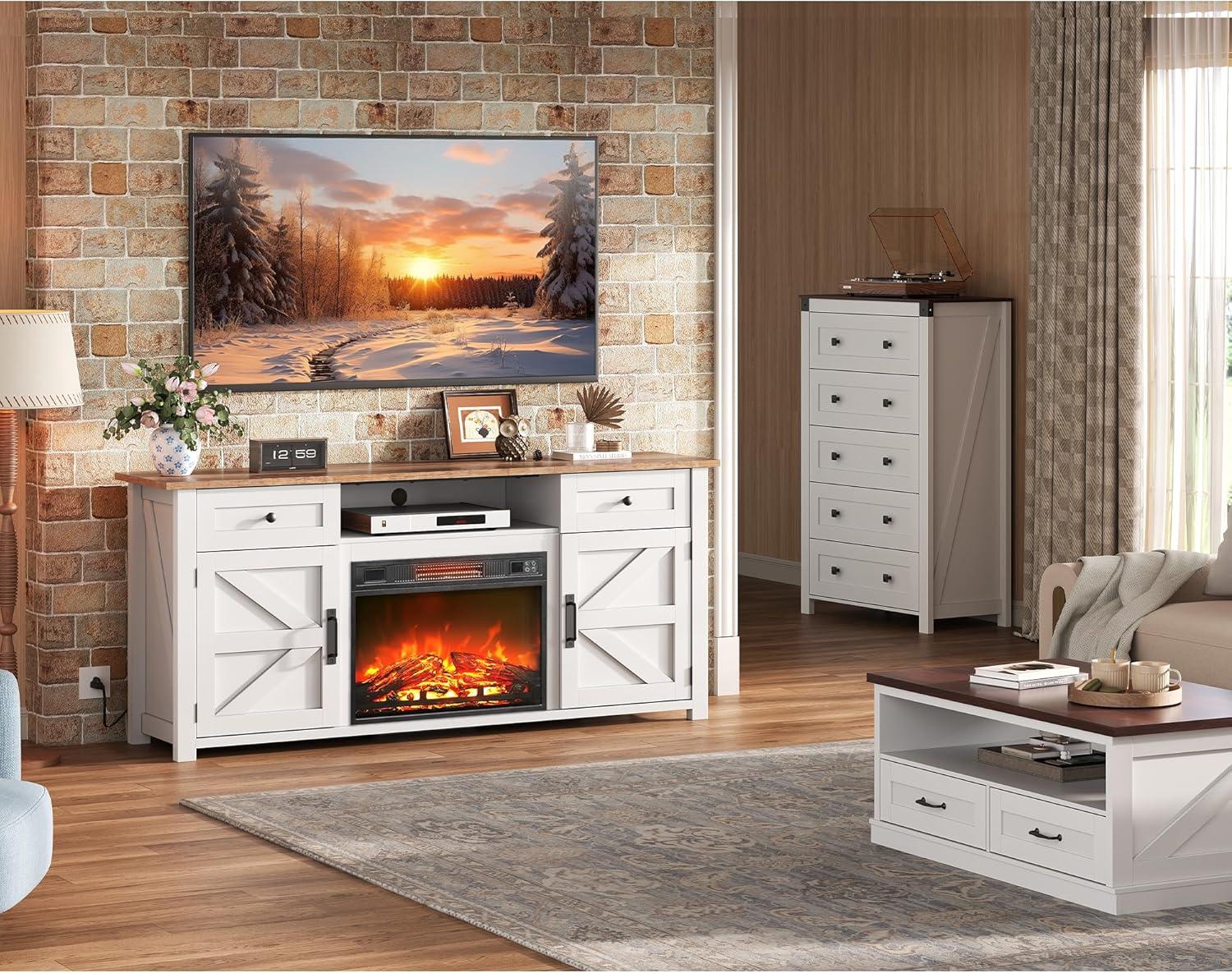 Modern Farmhouse Style with Functional Details: Blending rustic charm with contemporary function, this TV stand features magnetic soft-close doors and an anti-tip design for added stability. Its thoughtful layout and refined finish elevate any living space with both character and practicality