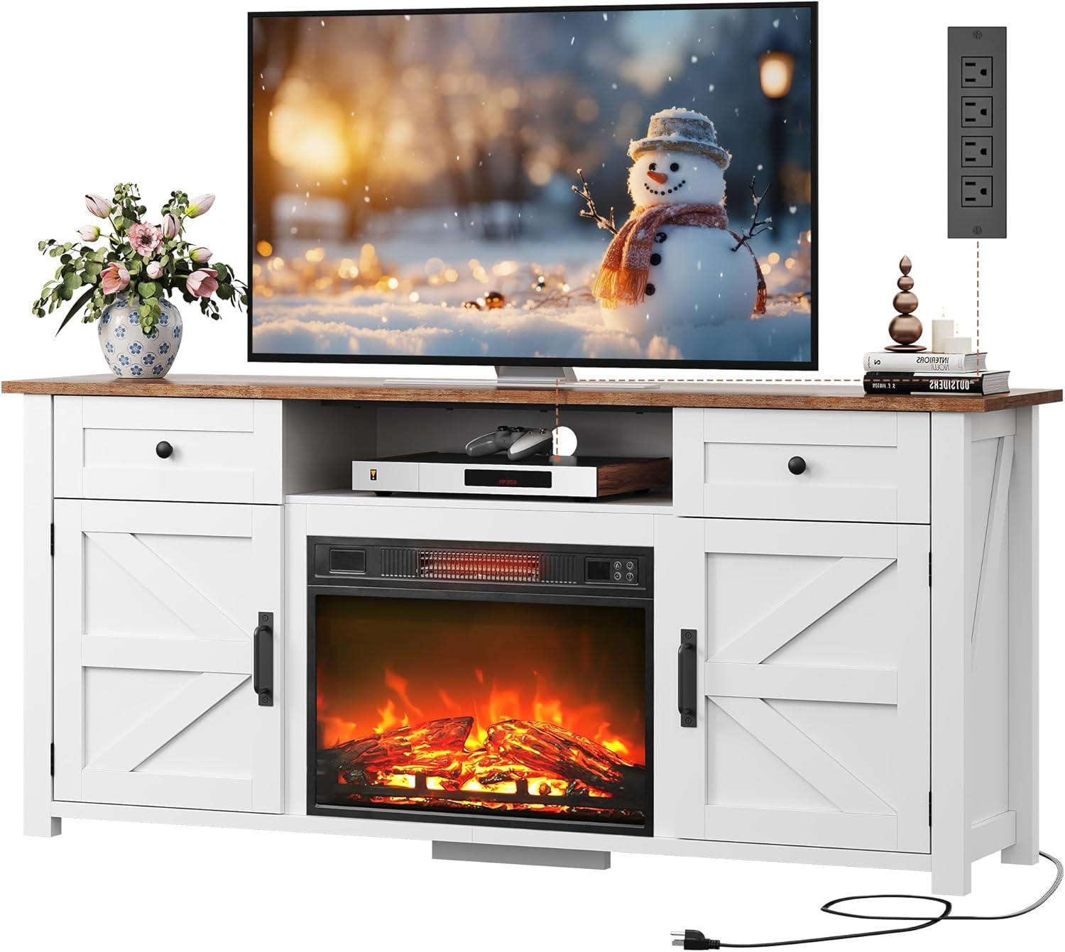 WLIVE TV Stand for 65 70 75 inch TV, Modern Farmhouse Entertainment Center with Built-in Power Outlet, TV Console with Storage Cabinets & Drawers for Living Room, Black(White)