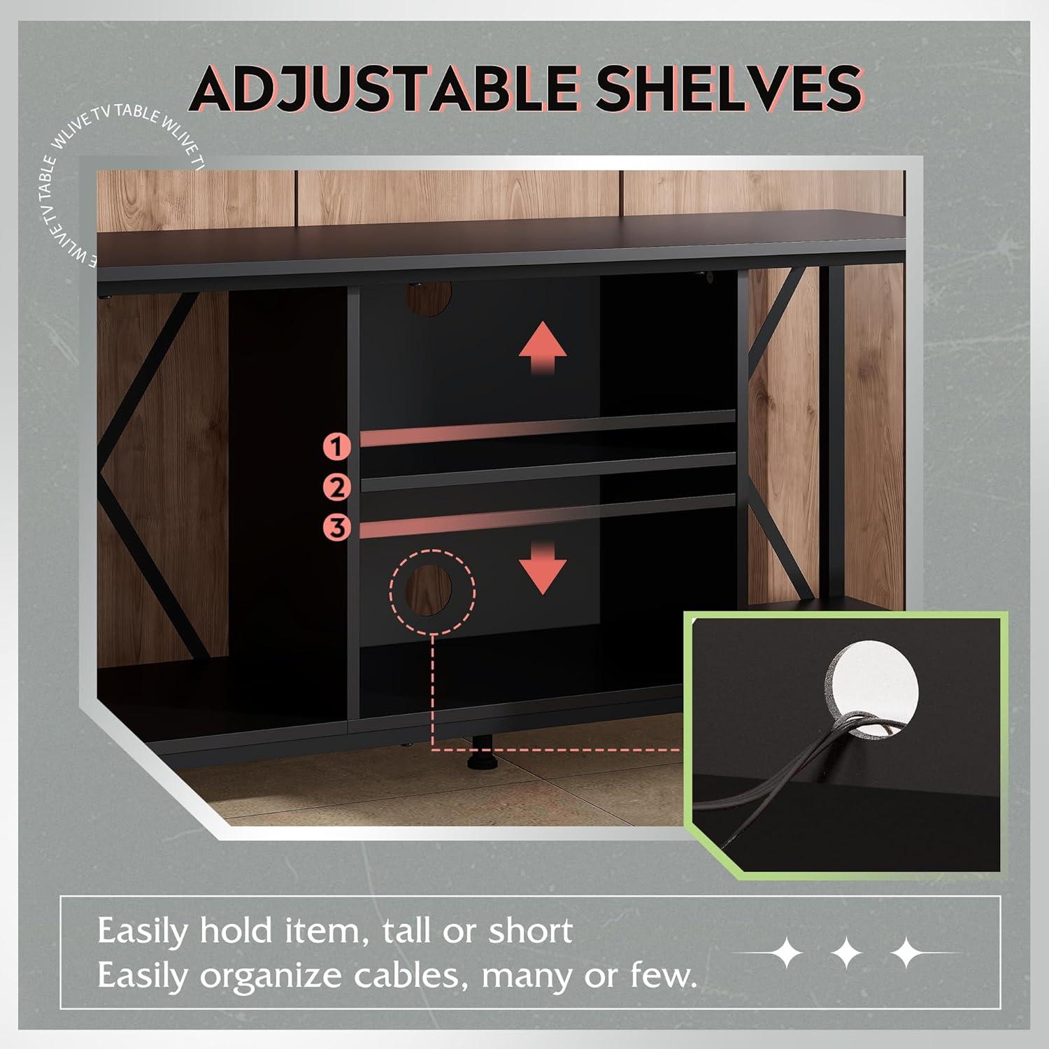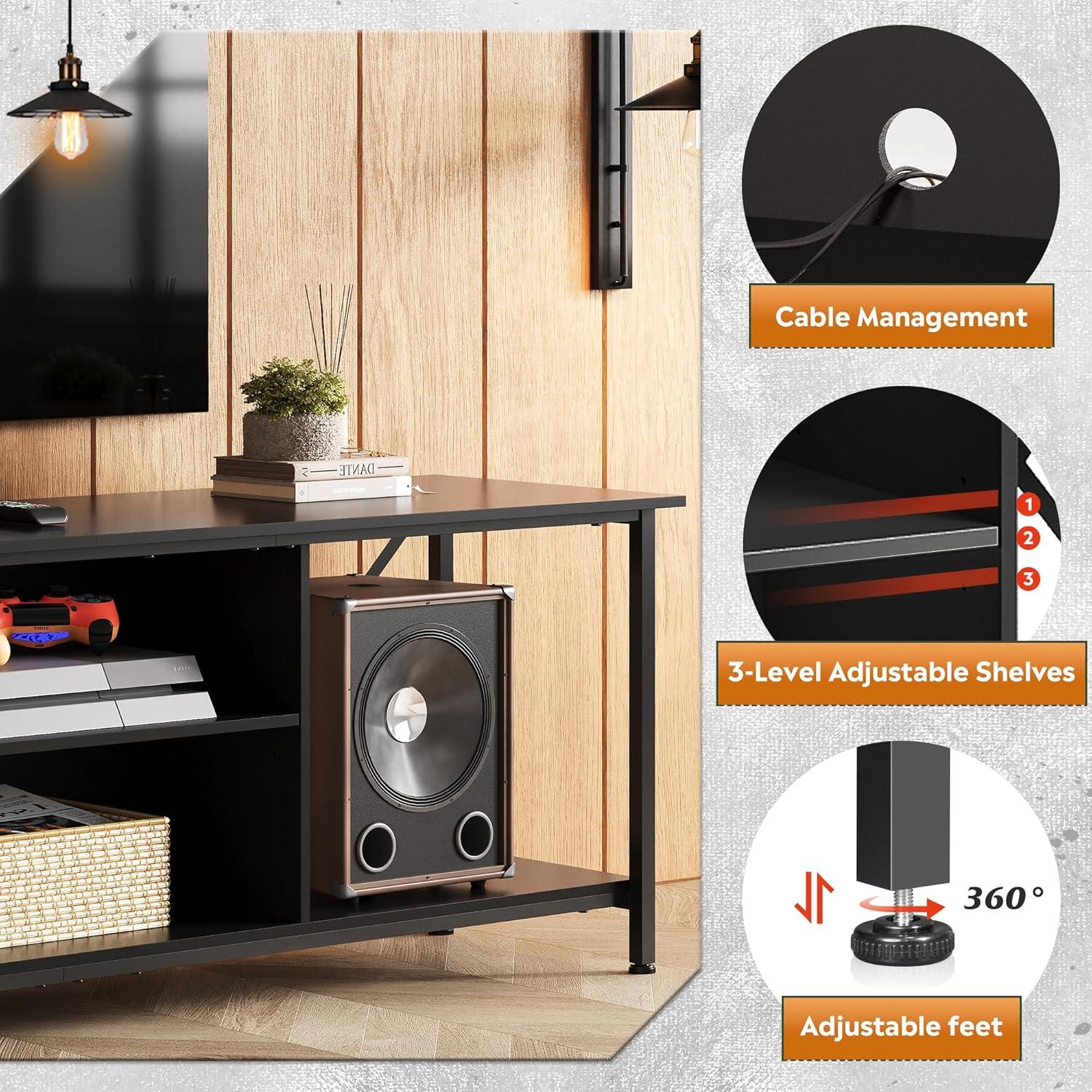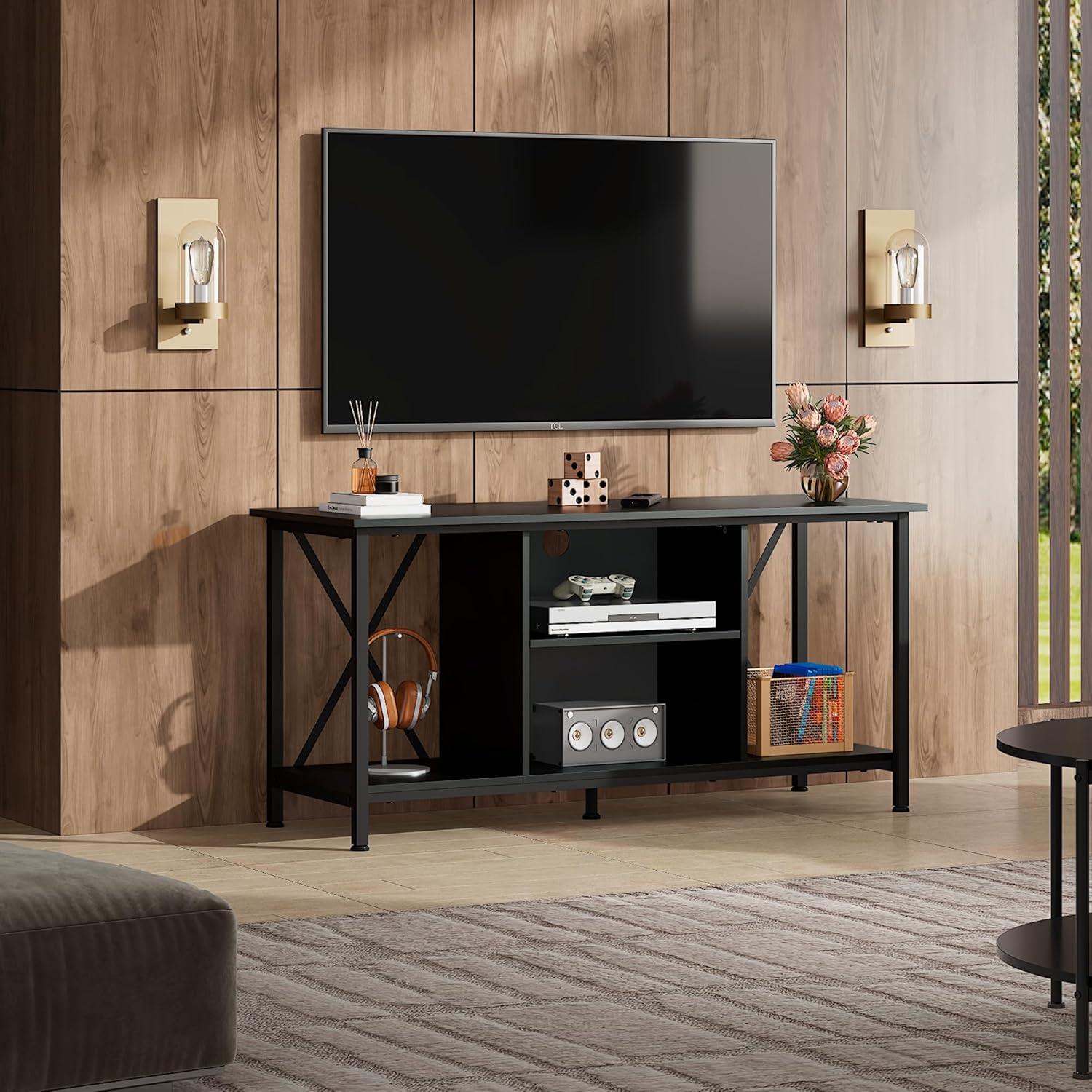 WLIVE TV Stand up to 65 Inch TV, 55" Entertainment Center, Industrial TV Console with Open Storage Shelf for Living Room and Bedroom, Rustic Brown(Black)