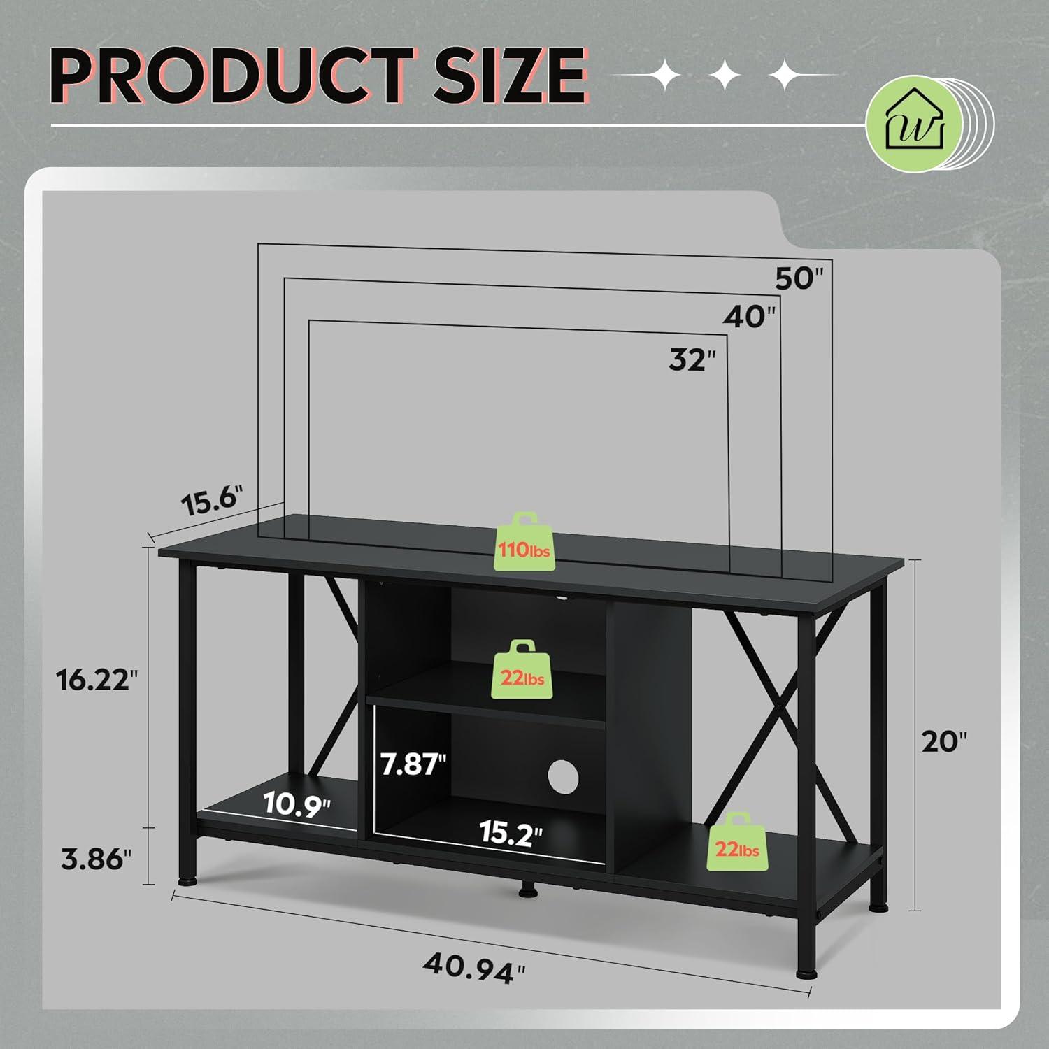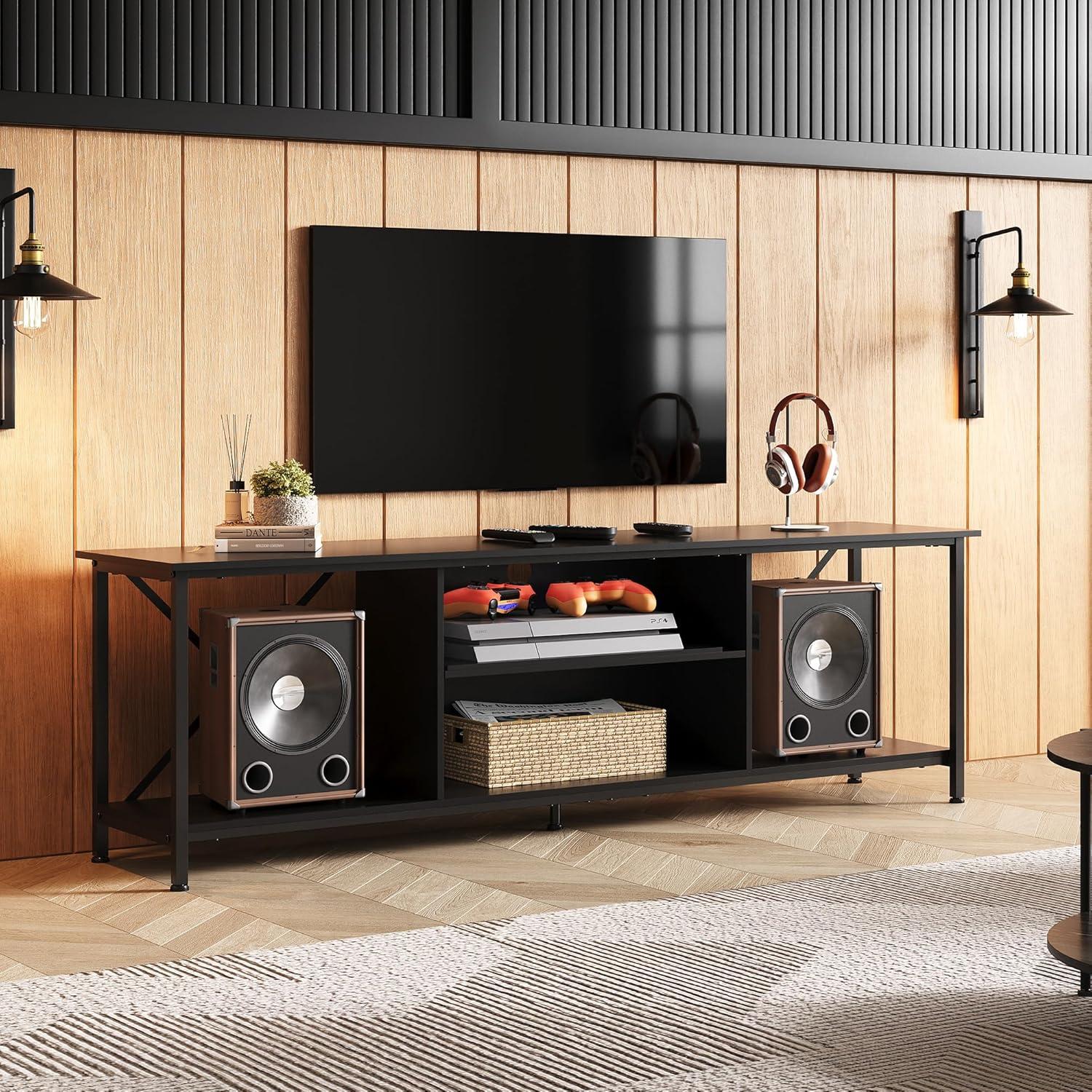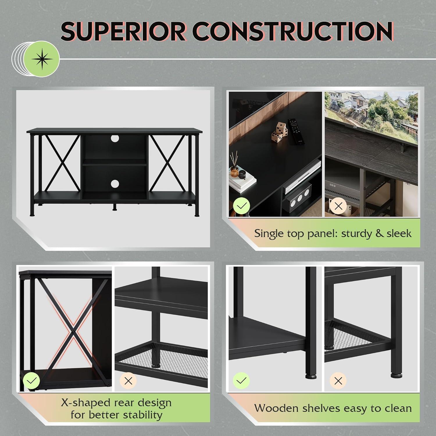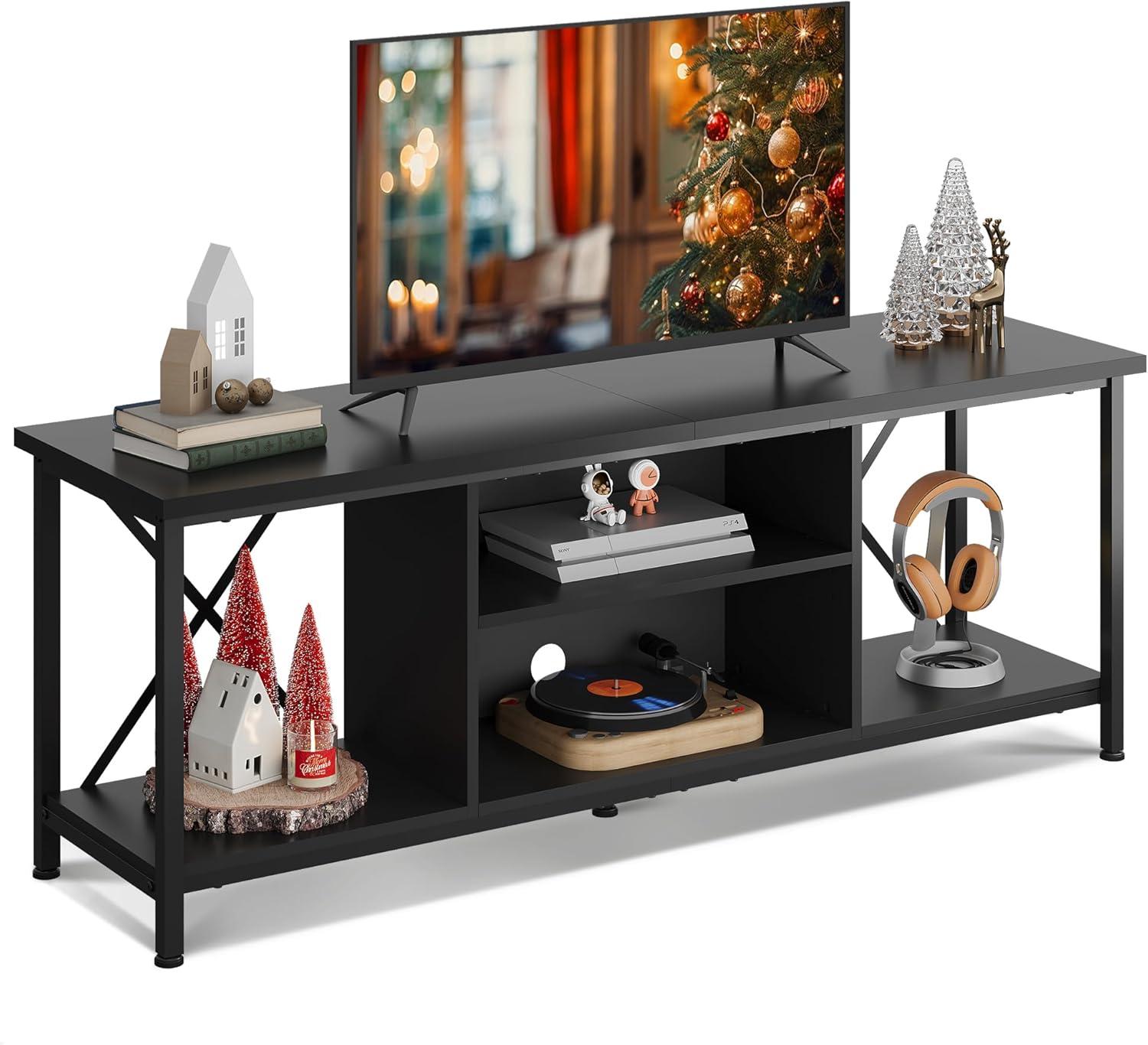 WLIVE TV Stand up to 65 Inch TV, 55" Entertainment Center, Industrial TV Console with Open Storage Shelf for Living Room and Bedroom, Rustic Brown(Black)