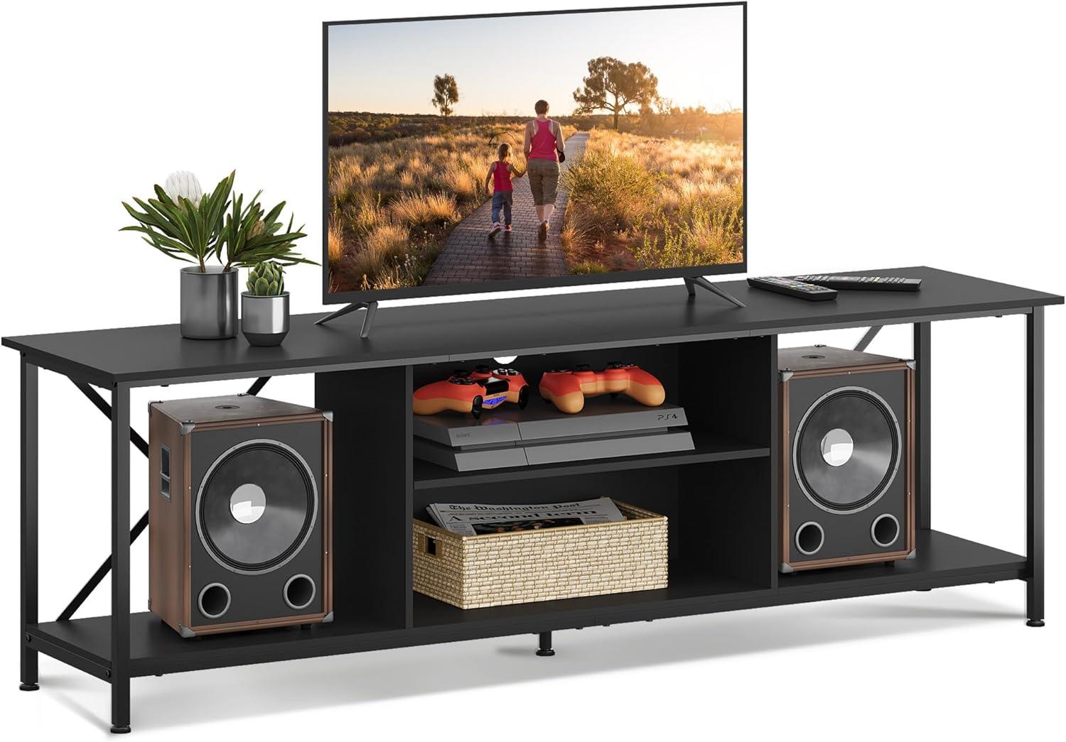 WLIVE TV Stand up to 65 Inch TV, 55″ Entertainment Center, Industrial TV Console with Open Storage Shelf for Living Room and Bedroom, Rustic Brown(Black)