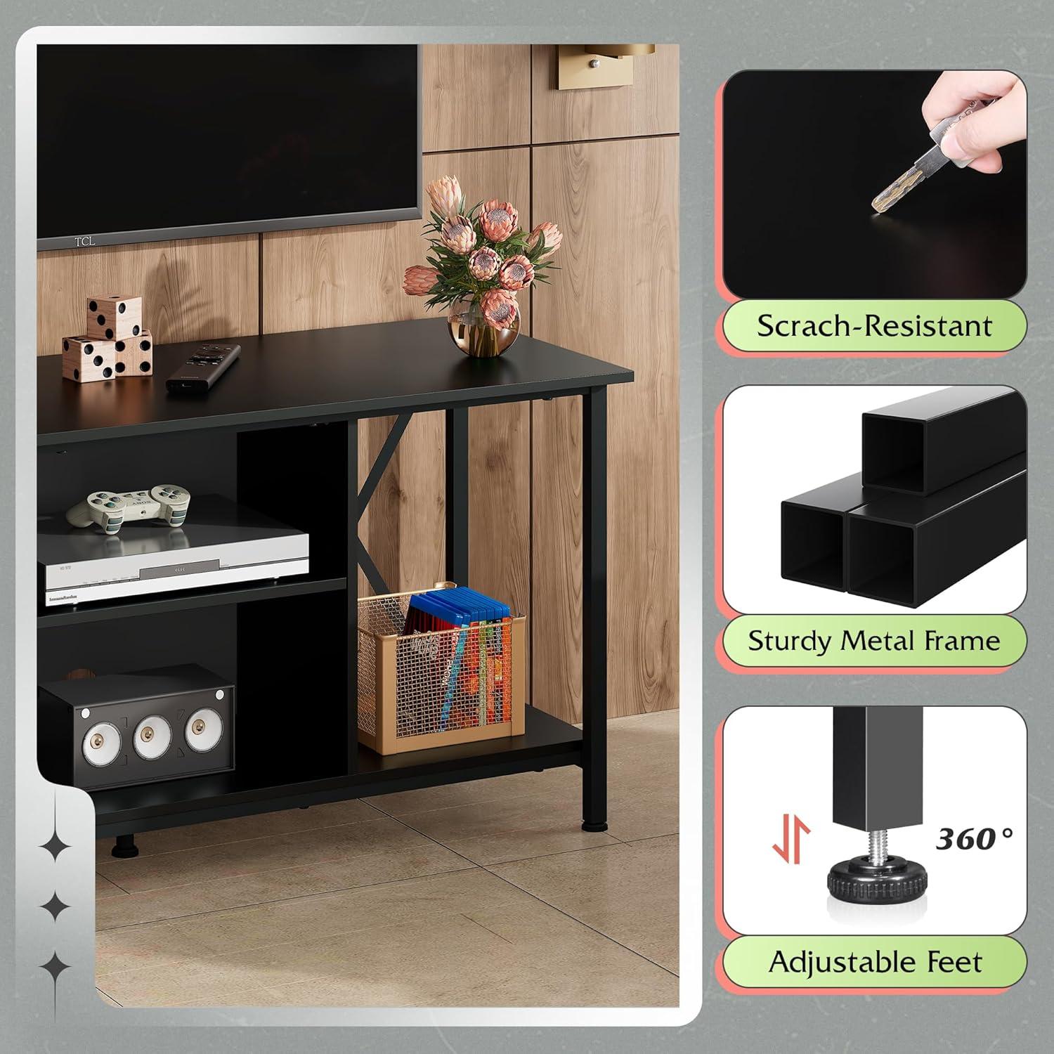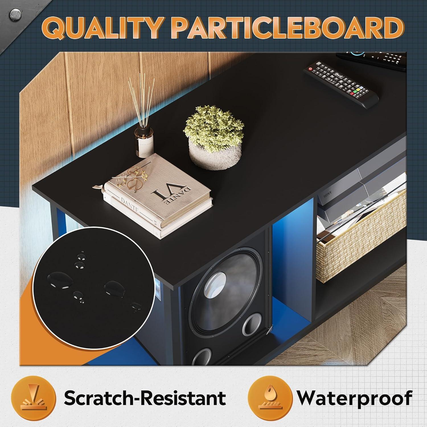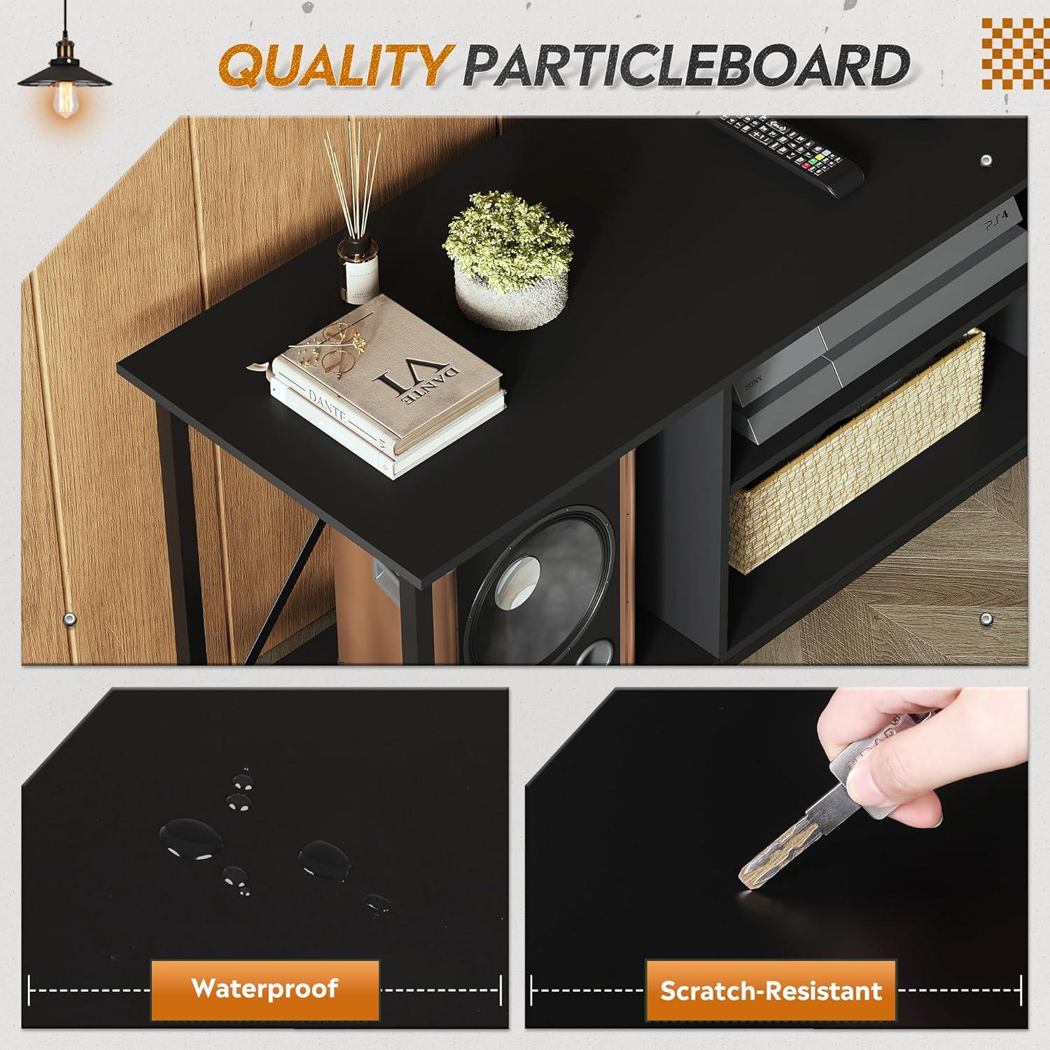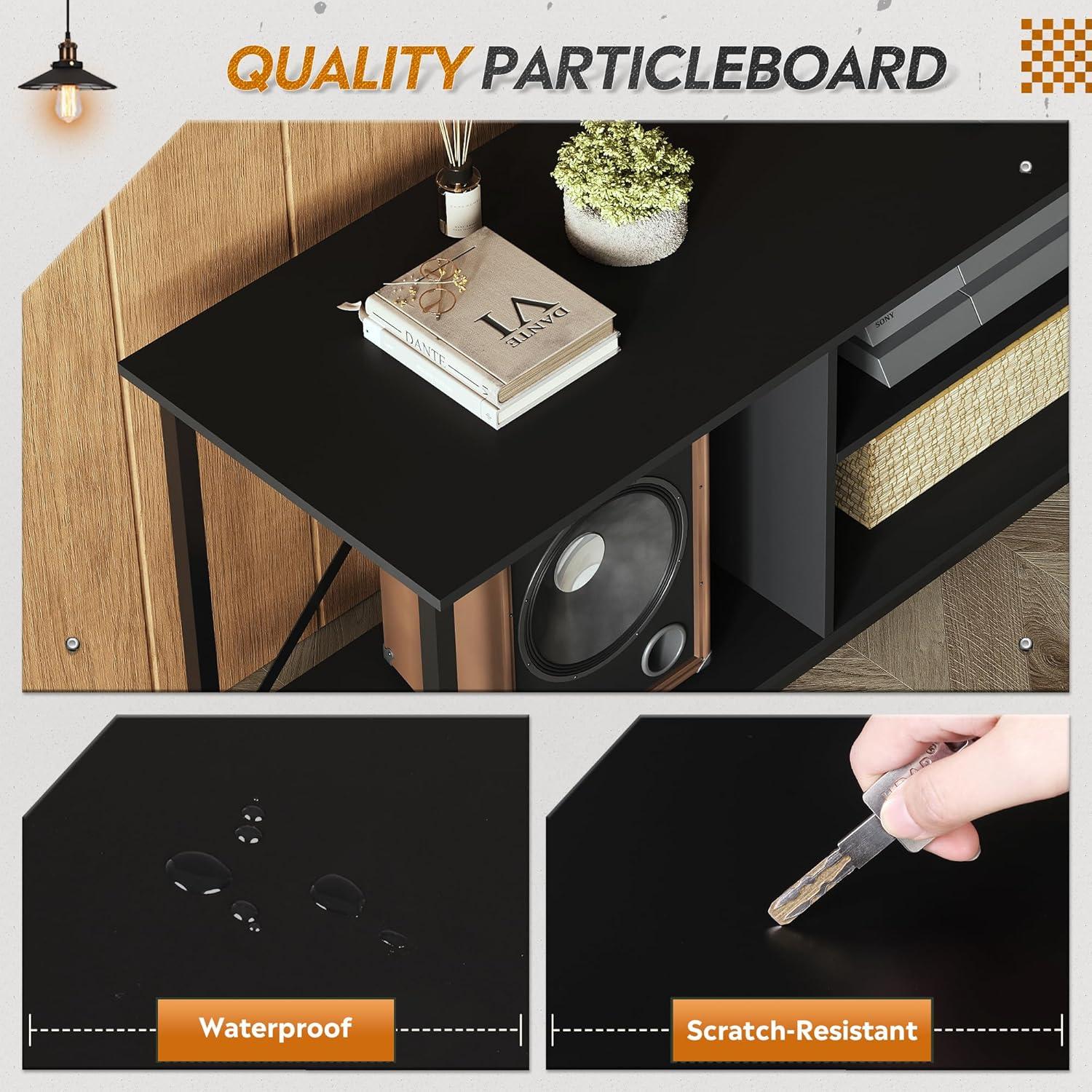 【Sturdy and Stable】The entertainment center is constructed with high quality particle board and metal frame to build a stable structure that provides strong weight-bearing performance,and the top can hold up to 110 pounds.It was also equipped with plastic adjustable feet to help stabilize uneven floors or carpets.