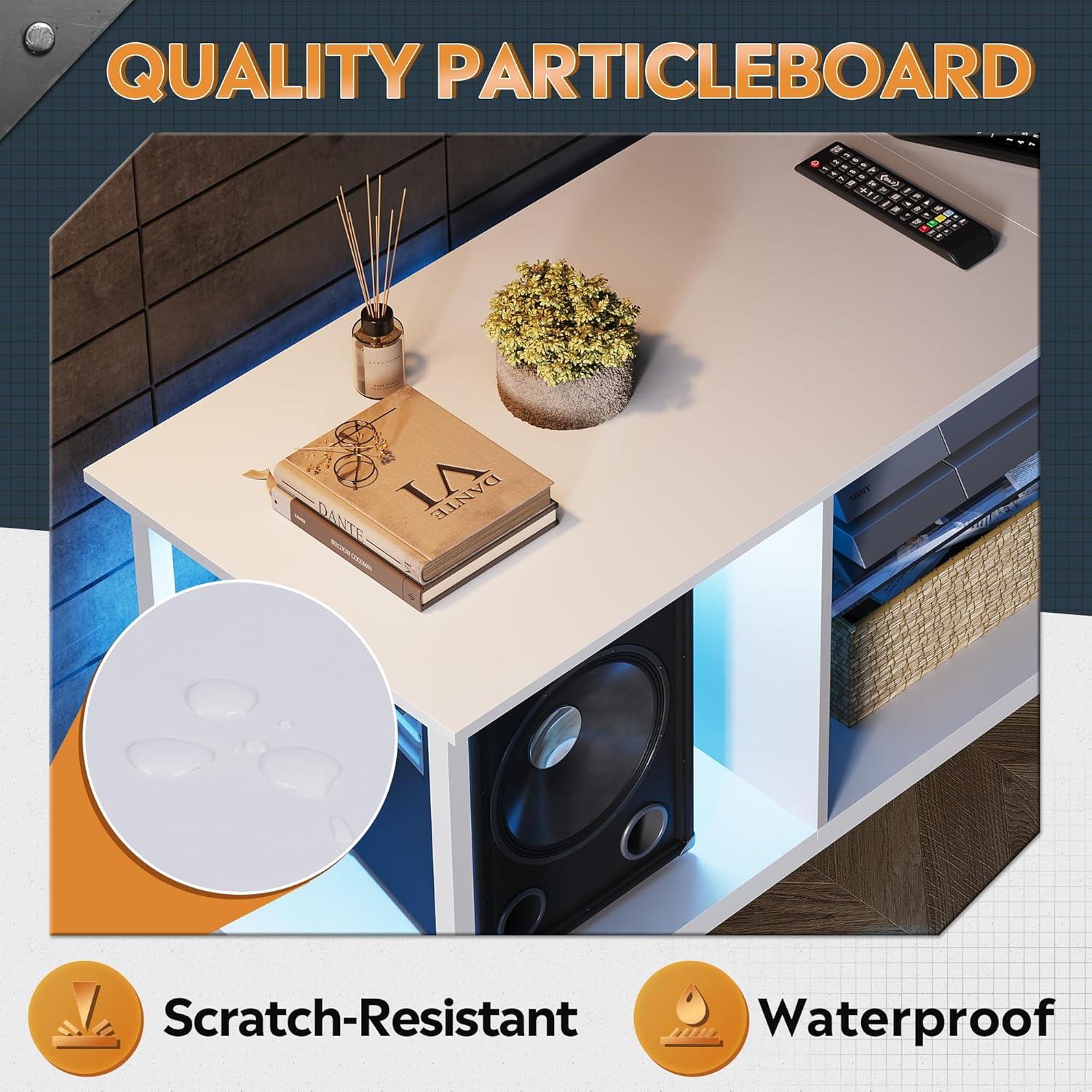 【Cord Management】The center back panel has pre-drilled holes for cable management, making it easy to run cables from various devices through, and also keeps the TV stand looking clean and tidy.