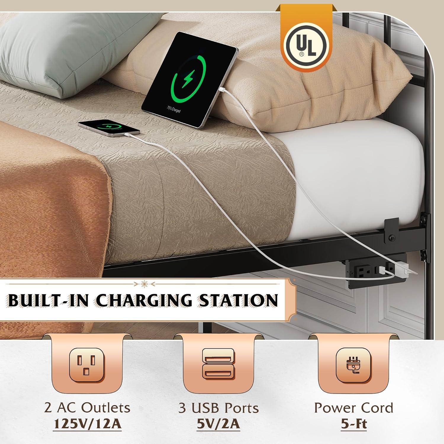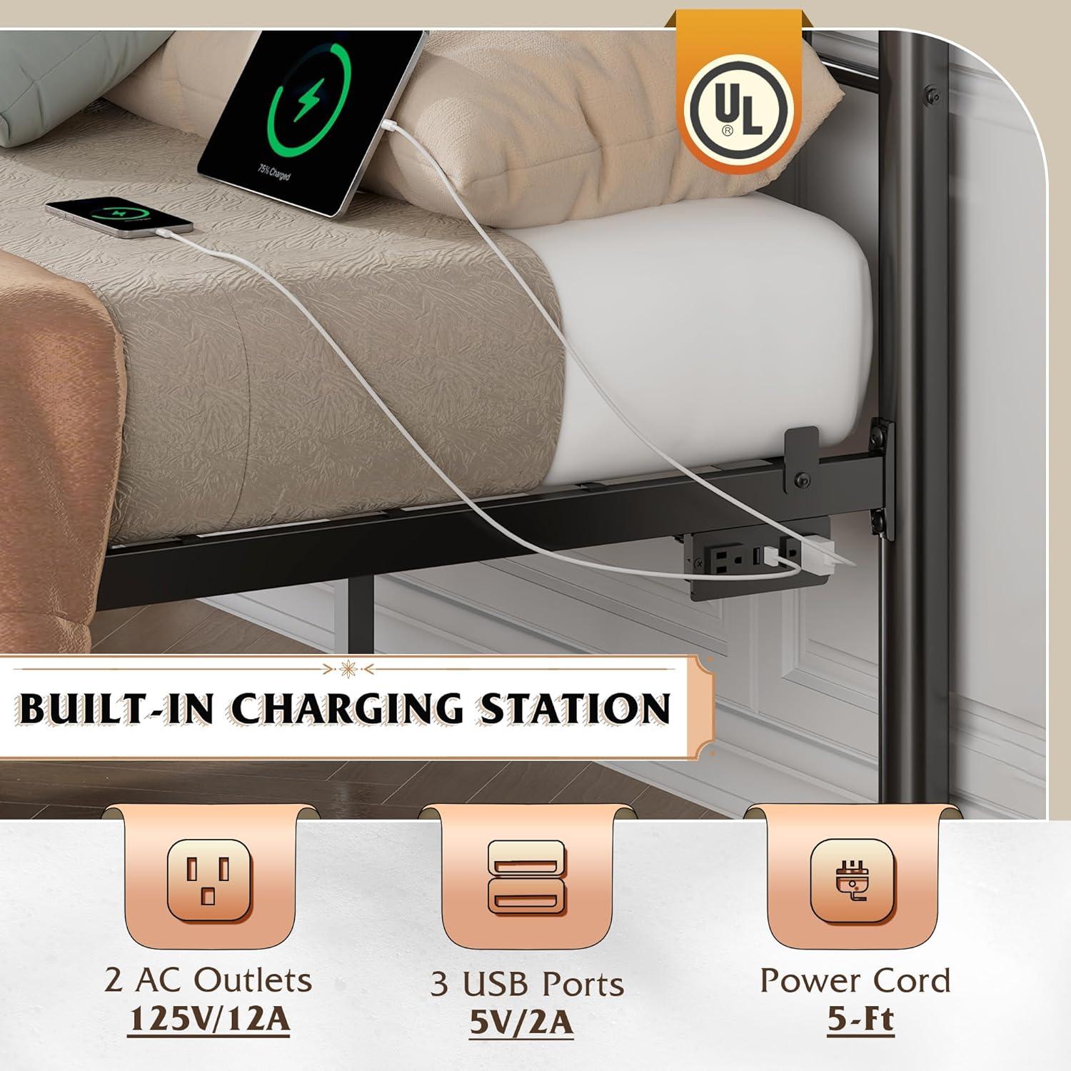 【✨Convenient Charging Station】:Say goodbye to low battery anxiety! The bed frame twin is equipped with 2 AC sockets +2 USB ports, 1.5m flexible cable length, Mobile phones, tablets, game consoles can be done, through UL/ETL certification, electricity safety!
