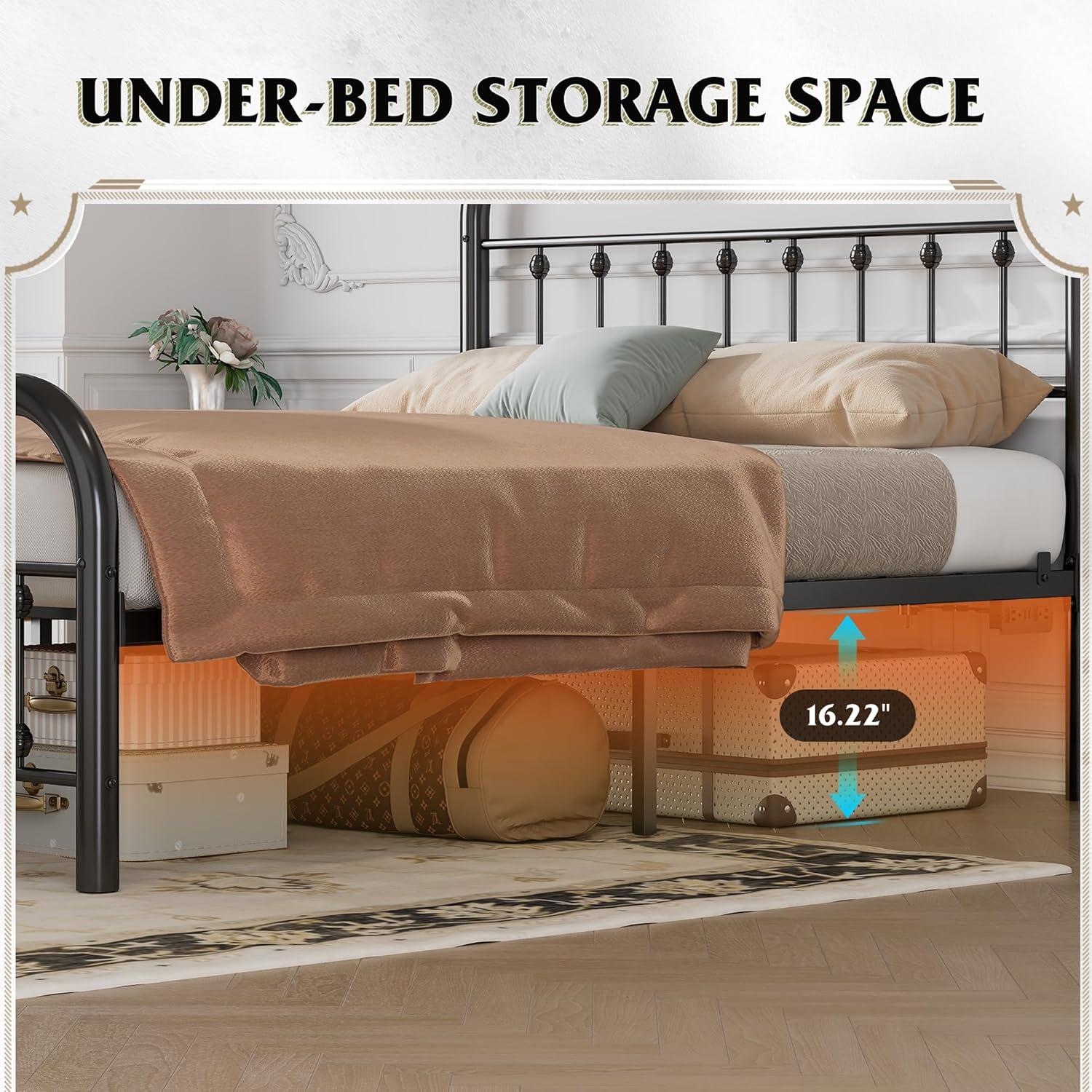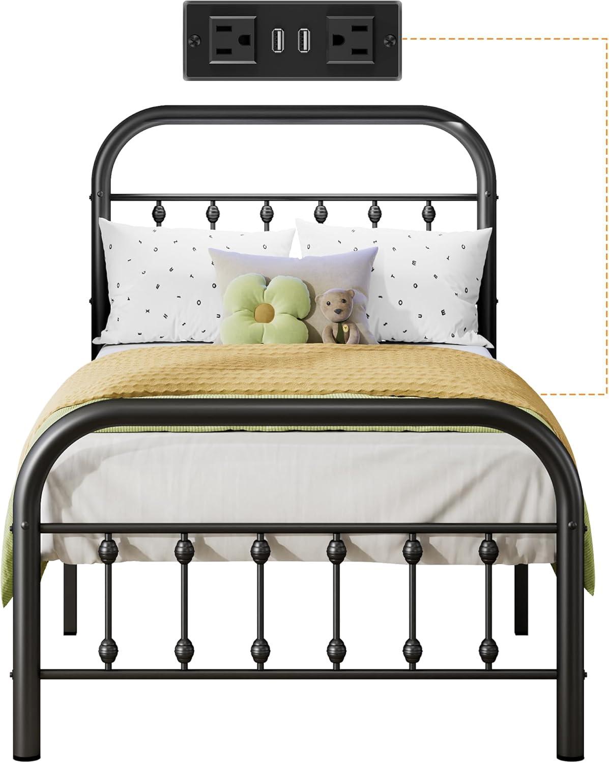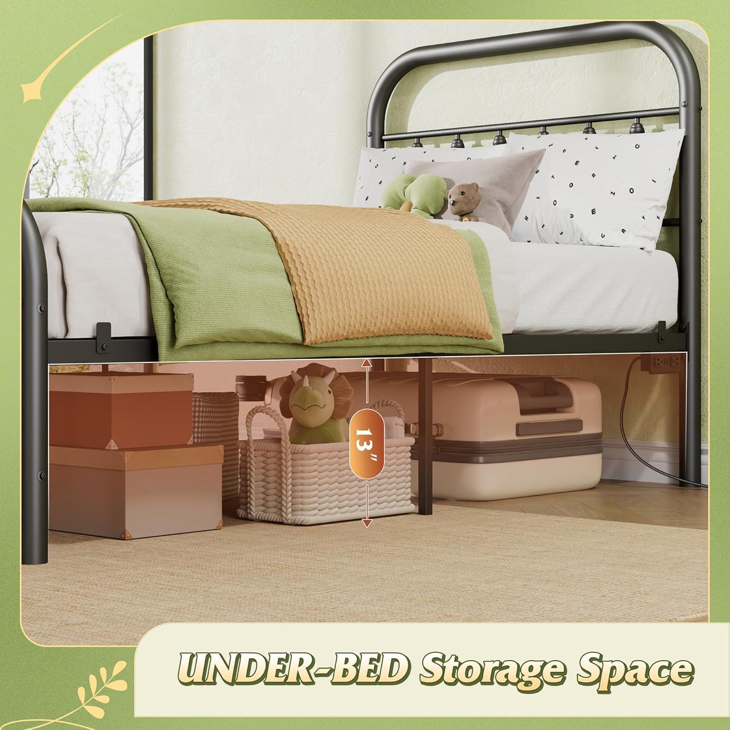【🏠High Headboard】:Compared with other metal beds, this twin metal bed frame has a higher headboard,designed taller than most standard metal platform bed, it offers exceptional back support for better protecting your head and providing you a comfortable sitting palce.