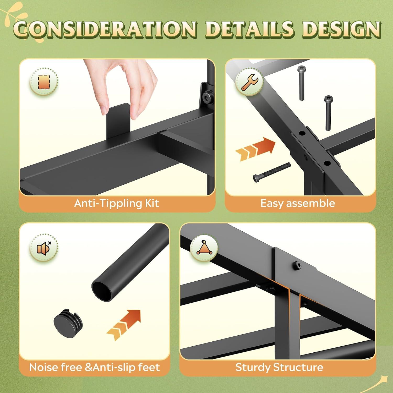 【✨ Sturdy and Safe】: This twin bed frames feature rounded corners, a smooth surface and 3M anti-slip pads on the legs to prevent the bed from sliding. The bed frame is made of 11 high-quality metals and sturdy steel legs, and can bear a load of up to 1500 pounds.