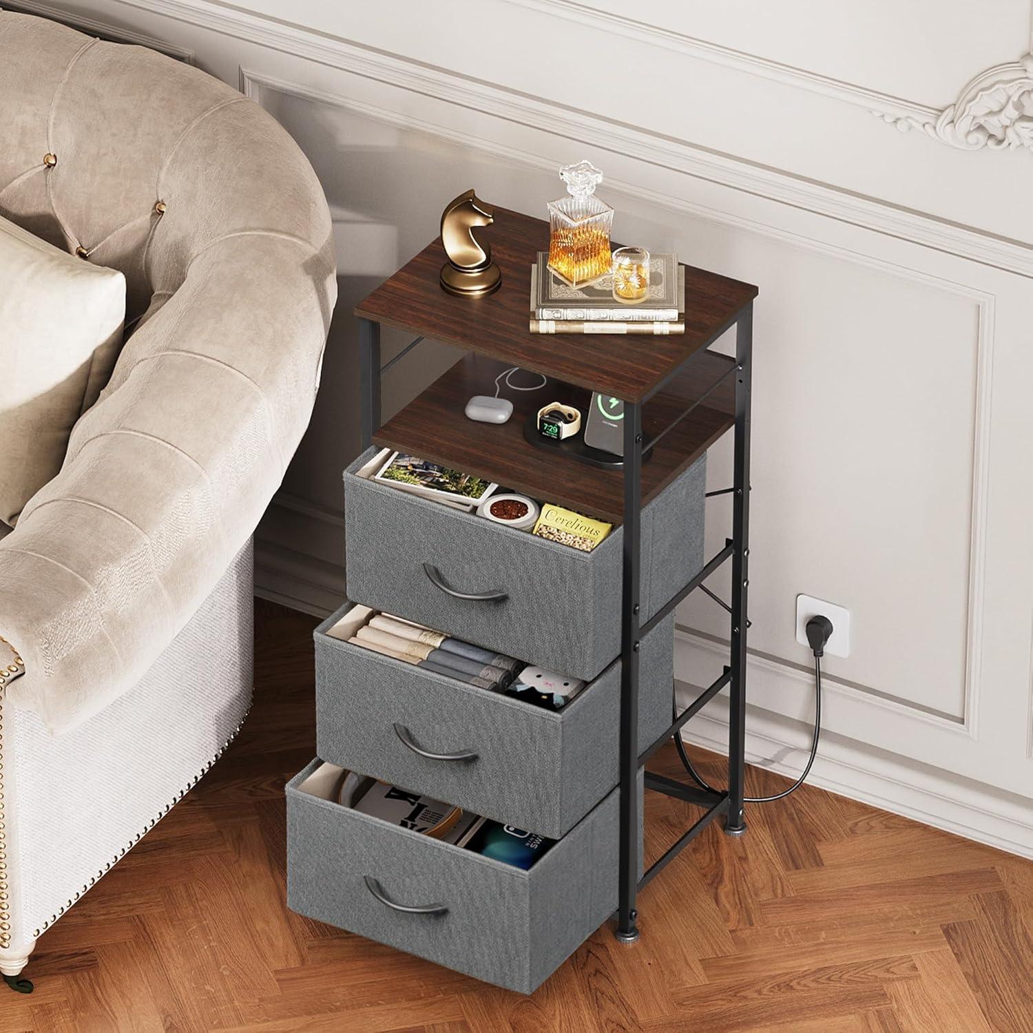 WLIVE White Night Stand with Charging Station, LED Nightstand with 3 Fabric Drawers, Tall Bedside Table with 3 USB Ports and 2 Outlets, Dresser for Small Space, 31.93" H Side Table for Bedroom(Dark Grey)