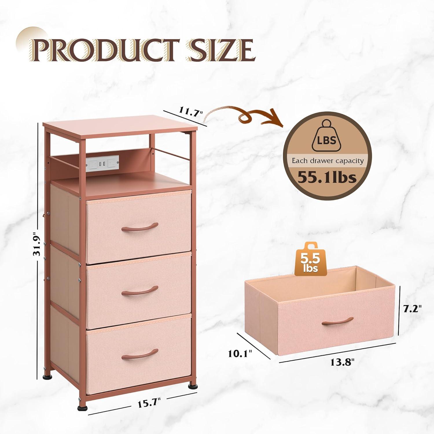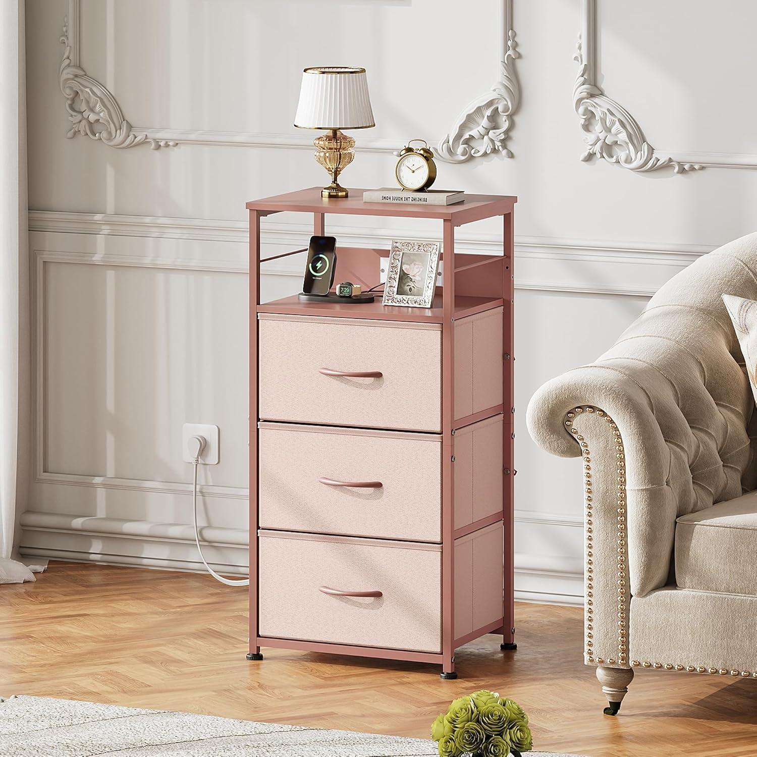 [Easy to Assemble] This small end table with charging station comes with instruction and enough components, you can follow the steps to assemble it easily. Also, This fabric 3 drawer LED nightstand with charger station features a specially designed anti-tip device to prevent any accidents during use. If you meet any problems, please feel free to send messages to us.