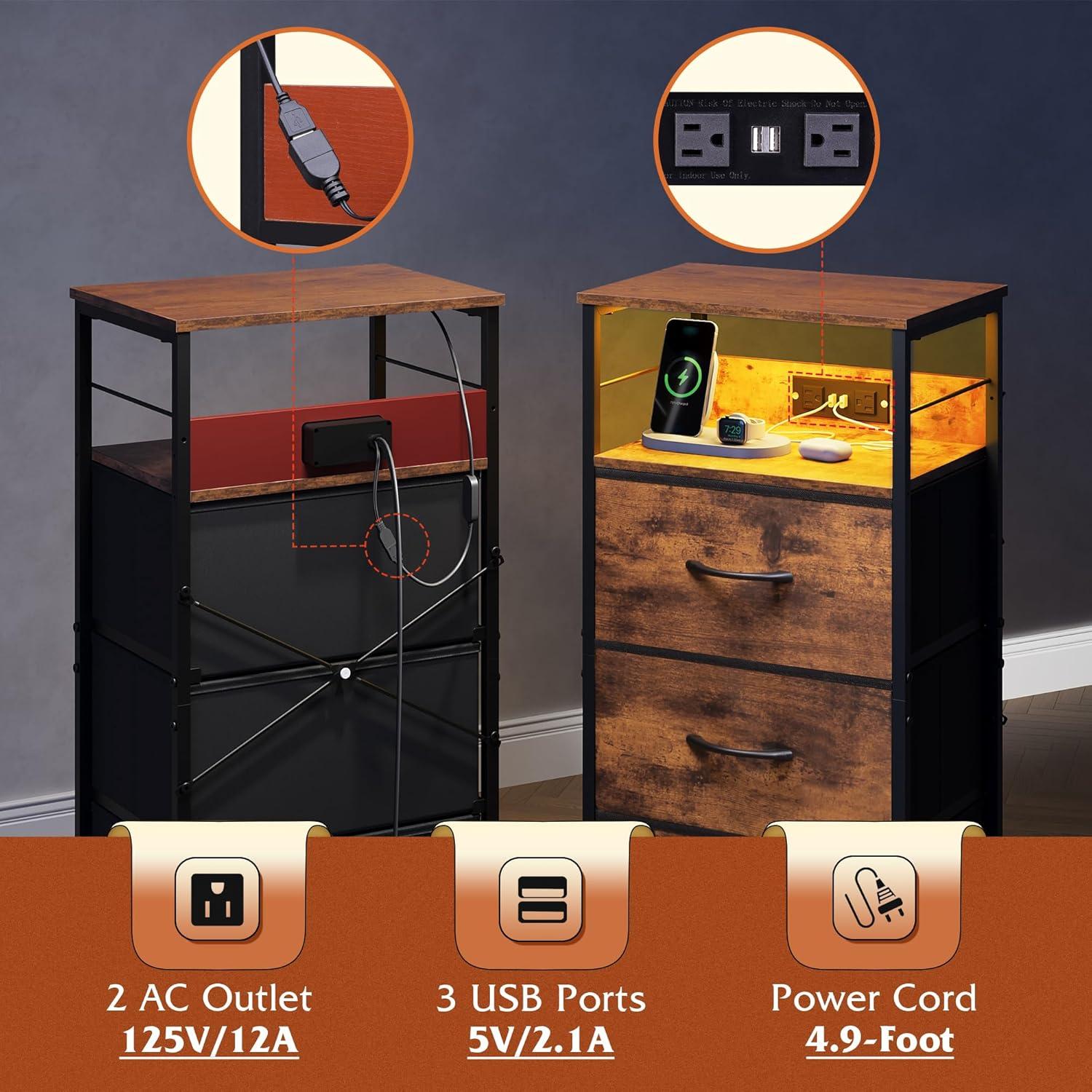 [Easy to Assemble] This small end table with charging station comes with instruction and enough components, you can follow the steps to assemble it easily. Also, This fabric 3 drawer LED nightstand with charger station features a specially designed anti-tip device to prevent any accidents during use. If you meet any problems, please feel free to send messages to us.
