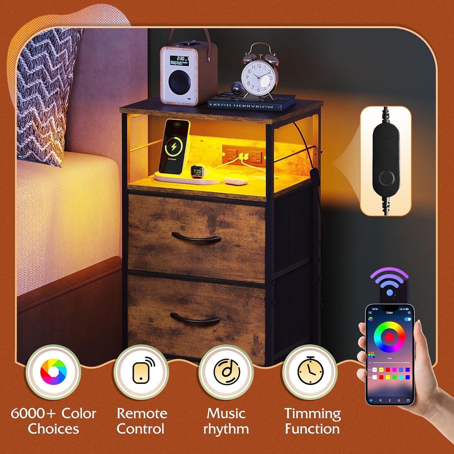 [Night Stand with Charger Station] This compact nightstand packs a punch with 3 USB ports and 2 AC outlets, so you can charge your smartphone and iPad all at once. No more hunting for charging ports! Plus, it has dedicated spots for LED light strips. The end table's built-in power design also keeps spills at bay, ensuring safety during everyday use.