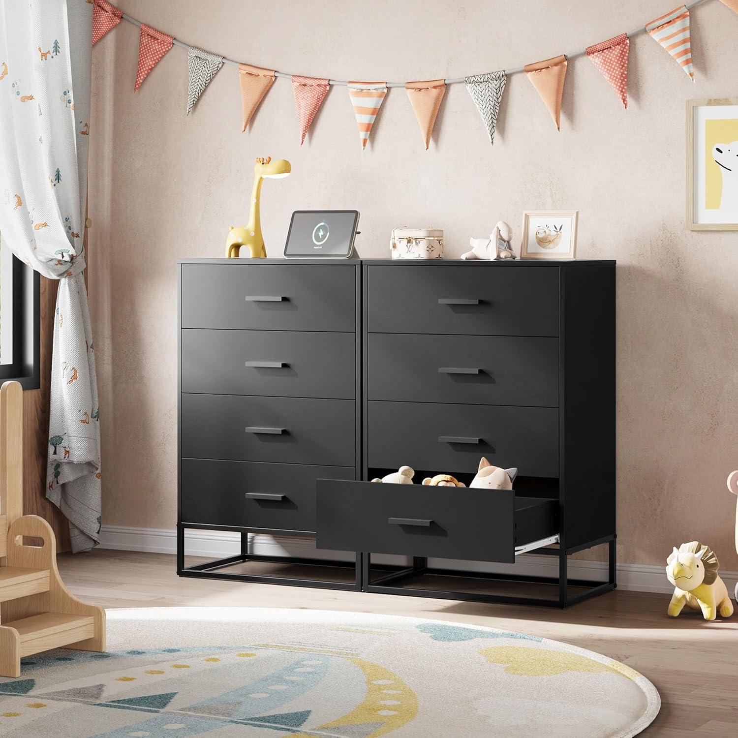 WLIVE White Wood Dresser for Bedroom with 4 Drawers, Tall Chest of Drawers with Sturdy Metal Frame for Living Room, Hallway, Closet(Black)