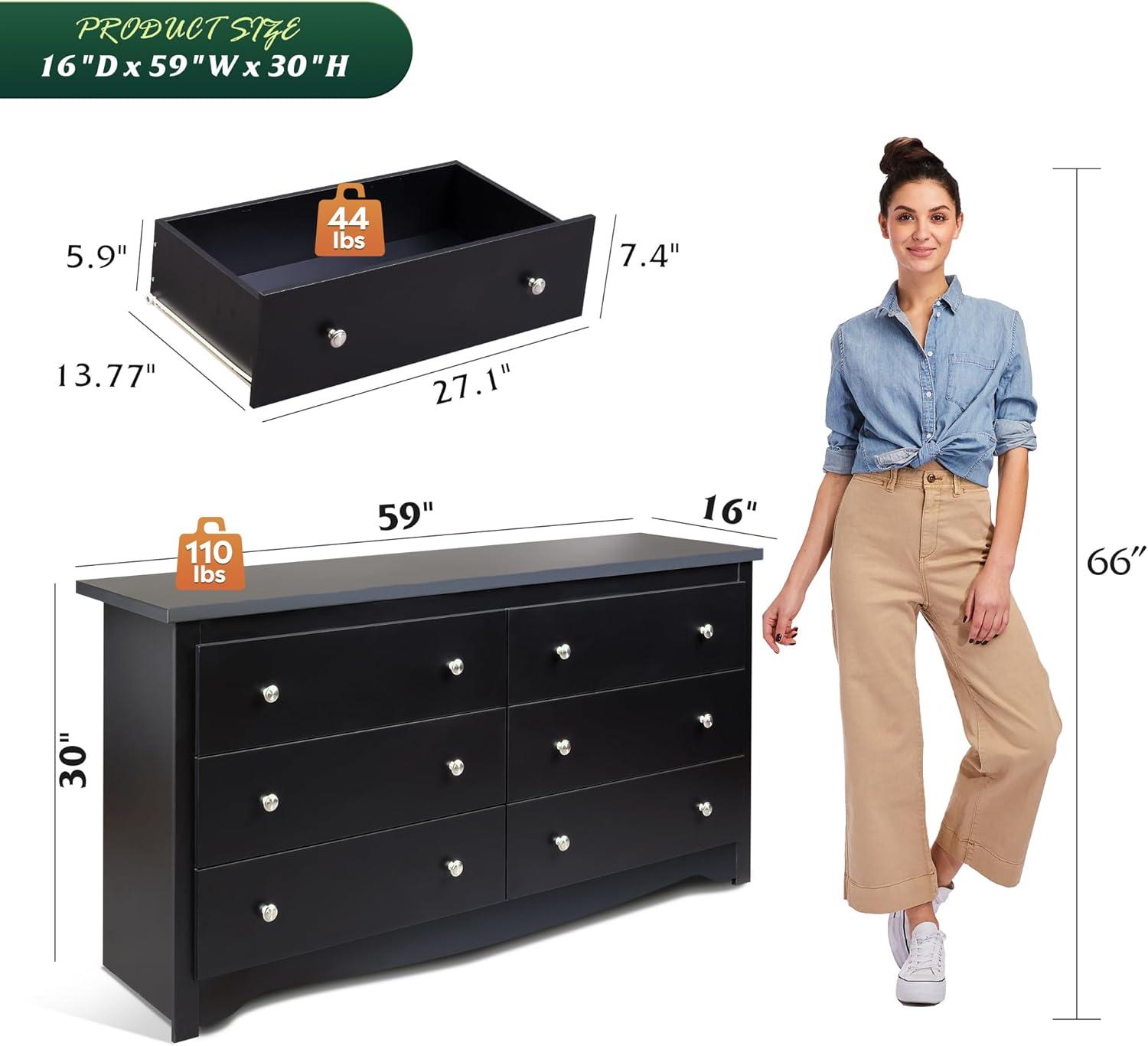 🎄【Modern design】This wide dresser (size:16″D x 59″W x 30″H) is suitable for a variety of settings, The double dresser combines modern design with practical storage.Easily adaptable to your home's style, Suitable for various occasions, the white dresser brings a stylish touch to any decor in your living room or bedroom.