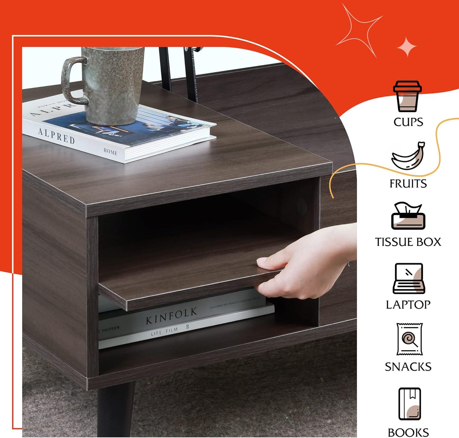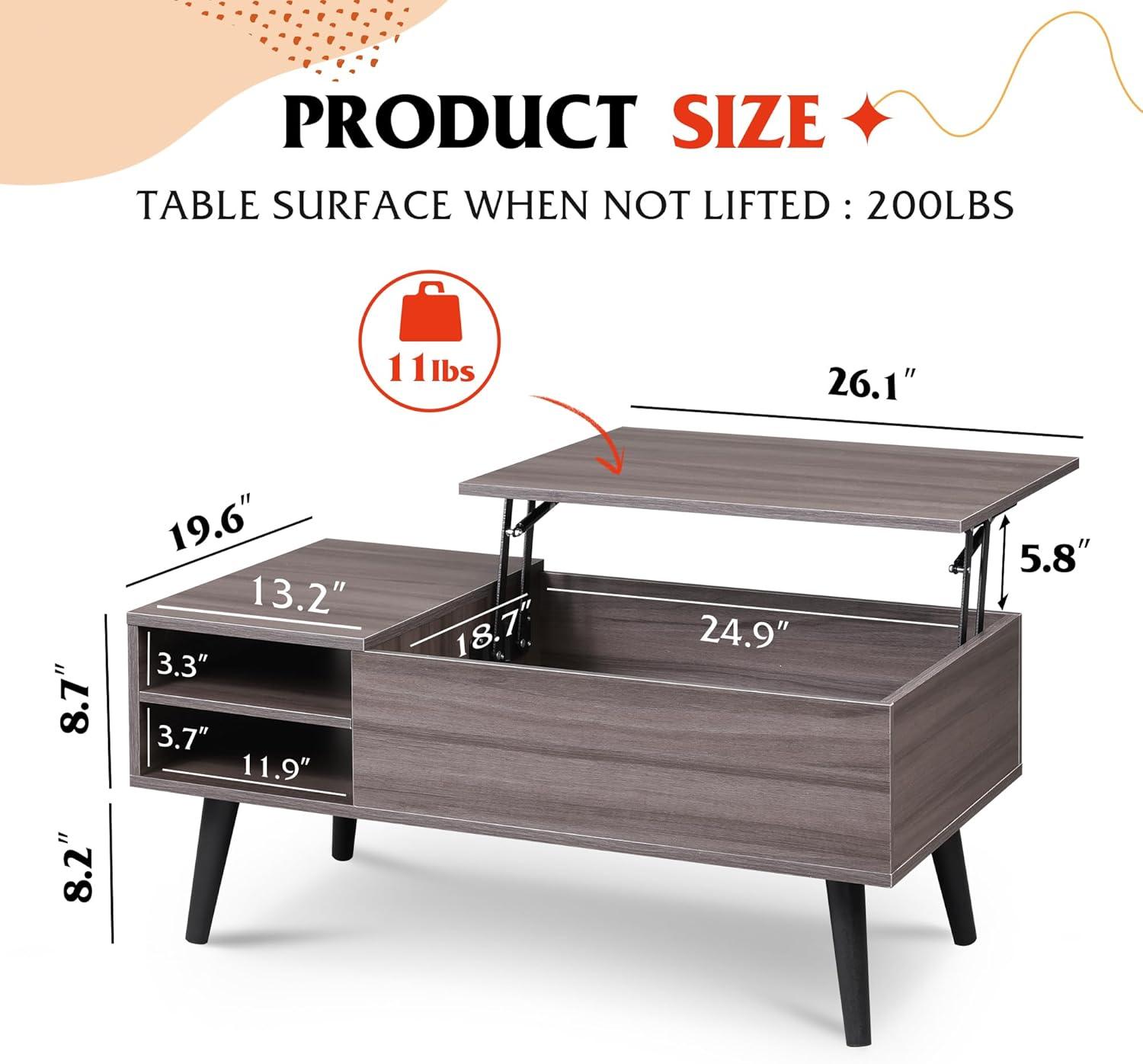 【Lift Top Design】When sitting on your sofa, the height of other center table may not be enough. This lift top coffee table has an extending top that lifts up to provide a floating raised work. surface,So you can working,dining and storage living room items here.