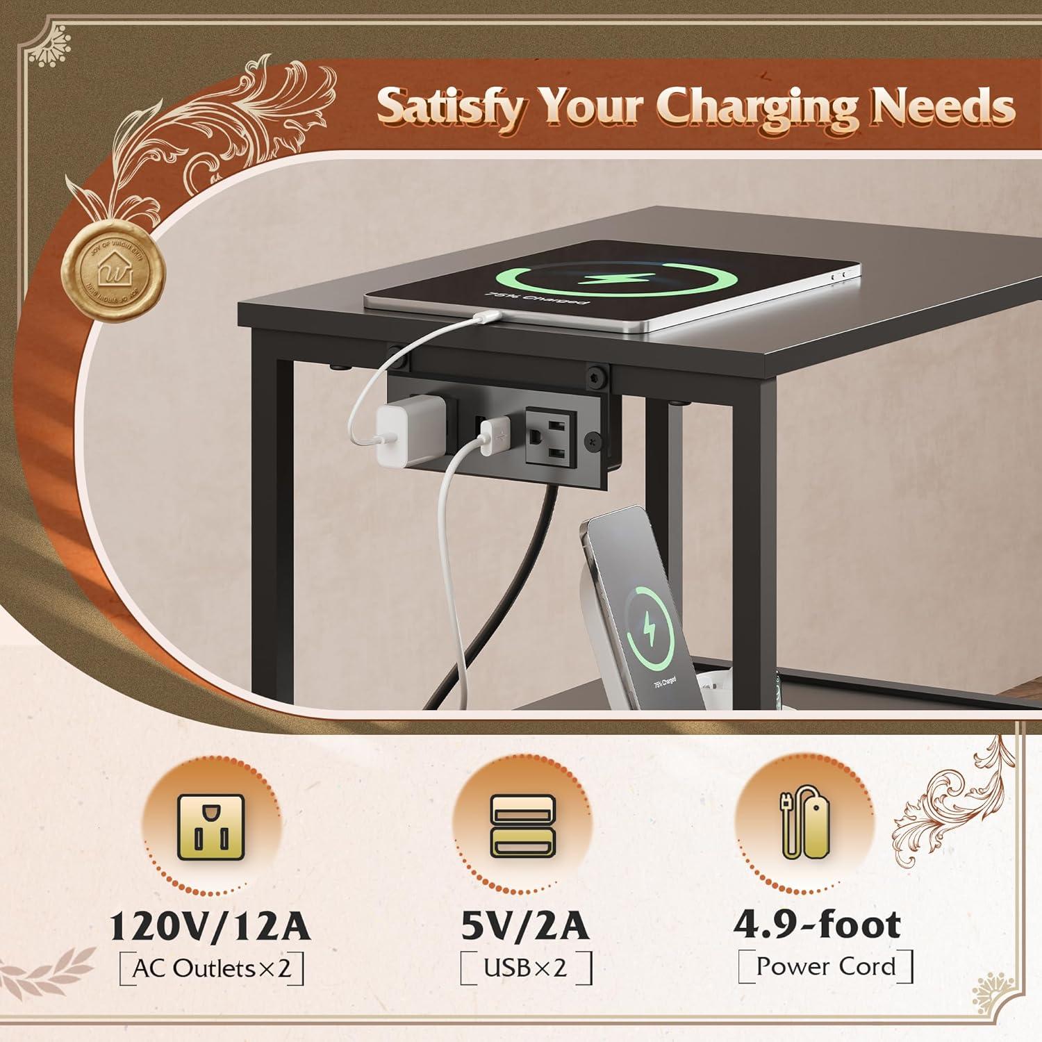 imageWLIVE Side Table with Charging Station and USB Ports Small End Tables for Small Spaces 3Tier Nightstand with Adjustable Shelf Bedside Tables Living Room Bedroom GreigeRustic Brown